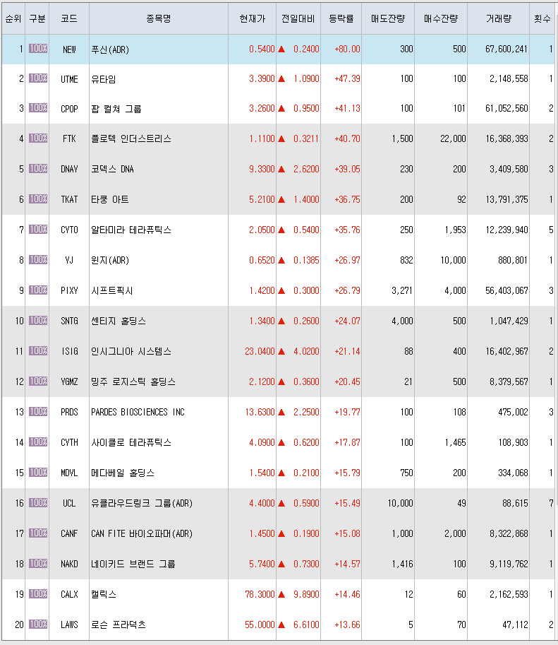 12월29일 미국주식 상승률 상위 종목 TOP 300calist (62)in #aaa • 4 years ago #zzan #kr #kr-steemit #dblog #liv #palnet #stock
