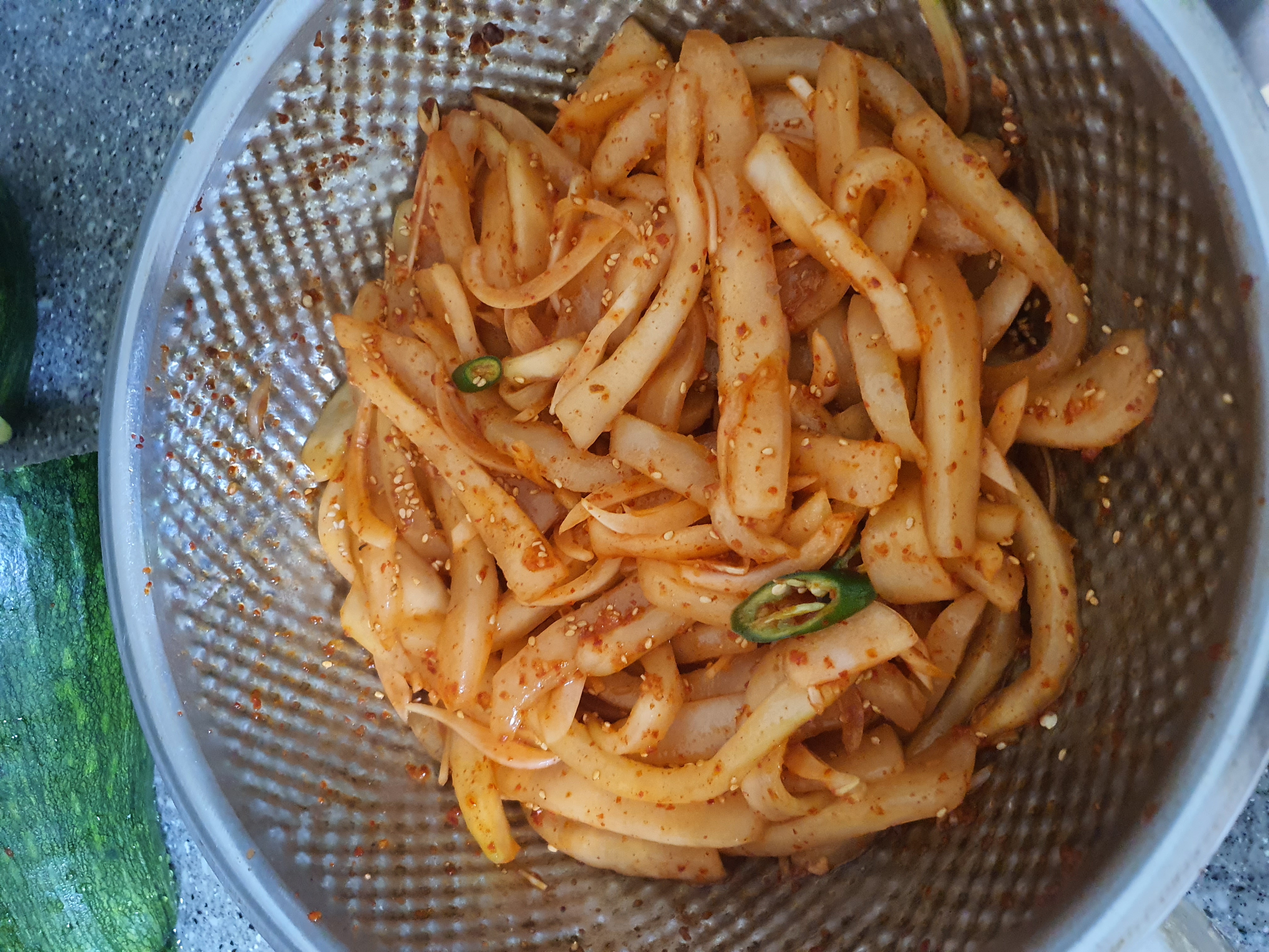 암튼 노각무침 만들다가 진짜... 노각 비틀어짜다가 팔 떨어져나가는 줄 알았다. 그래도 맛있게 먹게되니 ㅠㅠ 안 만들수가 없잖아.