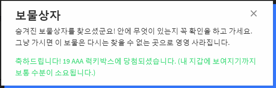 첫번째 럭키박스 1aaa , 두번째 럭키박스 20aaa, 세번째 1aaa, 이번에 19aaa
