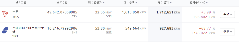불장에 내코인도 간만에 빨간맛docudai-jun (72)in #aaa • 5 years ago 이게 도데체 몇년만인지.. 2년을 버티다 오르기 직전 에이다는 처분해 버렸지만 2년째 쥐고 있는 트론과 슨트가 간만에 불장이네요. 정말 몇년만에 느껴보는 뿌듯함인지 모르겠네요. 다들 성투하시고 올해는 다들 부자되십시오 #sct #sct-kr #tron #snt #dblod #zzan #kr-coin