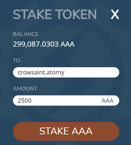 crowsaint 계정에 임대했던 2500AAA도 crowsaint.atomy 계정으로 스테이킹해드렸습니다~
