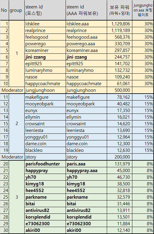 2) 1 그룹에 속한 분들은 @jini-zzang님을 오토보팅에 추가해주시기 바랍니다.