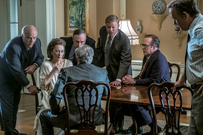 이 영화는 크게 두 가지 서사가 진행된다. 하나는 <워싱턴 포스트> 편집국장을 포함한 기자들이 베트남전의 진실을 담고 있는 기밀문서를 입수하고, 보도하기 위해 노력하는 이야기다. 또 하나는 투자자들이 탐탁지 않게 생각하는 여성 발행인 캐서린이 신문사의 명맥을 좌지우지할 수 있는 중요한 보도를 결정하기까지의 고민을 다룬 이야기다. 두 서사가 맞물리면서 스티븐 스필버그 감독은 트럼프 시대의 미국에서 중요한 화두인 언론의 자유와 페미니즘의 중요성을 동시에 강조한다. 그것이 40년도 더 지난 과거 이야기지만 지금 시대에서 더 절실하게 다가오는 이유다.
