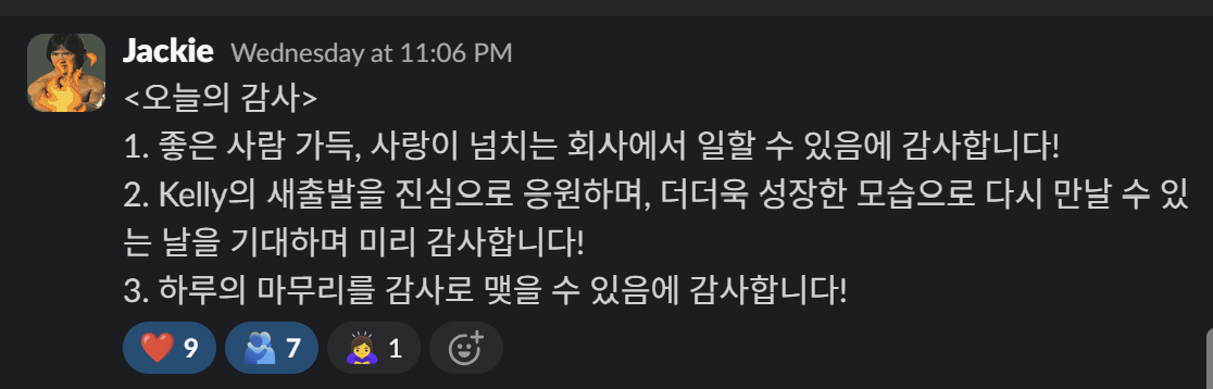 감사일기 쓰는 회사라니 유니콘 회사같아요🦄