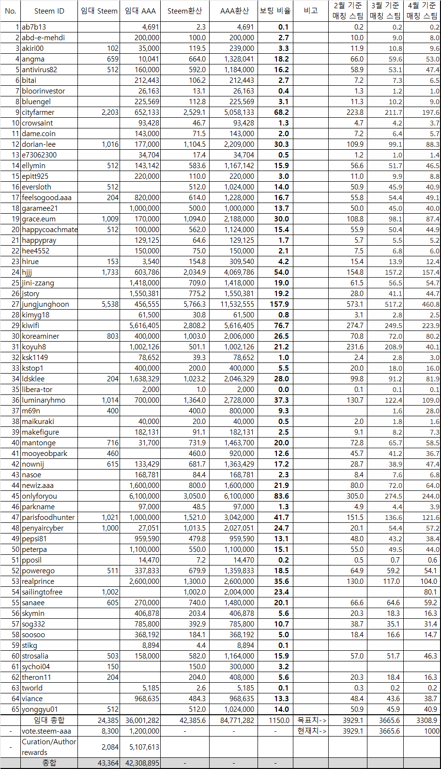- 임대해주신 AAA 파워는 스팀파워로 환산되어 간주됩니다. 현재 2000AAA가 1스팀으로 간주되고 있습니다.