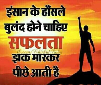 लोगो की सोचdines (29)in #aapki • 8 years ago अगर लोग यह मान ले कि मुझे ये चाहिए है तो सिर्फ चाहिए नही , ये मुझे चाहिए ही चाहिए तब आपको आपकी मंजिल पाने से कोई रोक नही सकता। #kamyabi