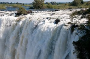 Located on the border between Zambia and Zimbabwe, travelers access the falls through either Livingstone, Zambia or Victoria Falls, Zimbabwe. The falls are also close to the border of Botswana. The Zambezi River, which has its source in northern Zambia, serves as the fall’s water source.