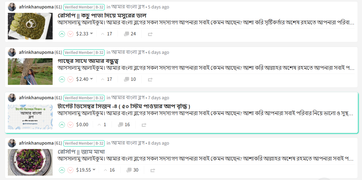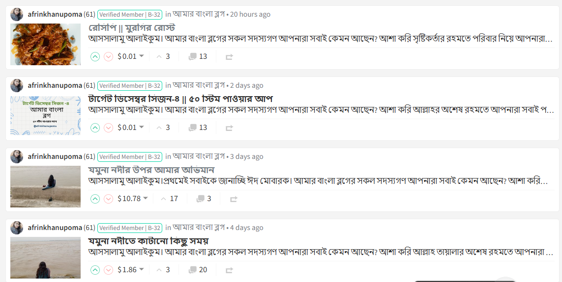 "আমার বাংলা ব্লগ" আজকের ফিচারড আর্টিকেল রাইটার - @afrinkhanupoma