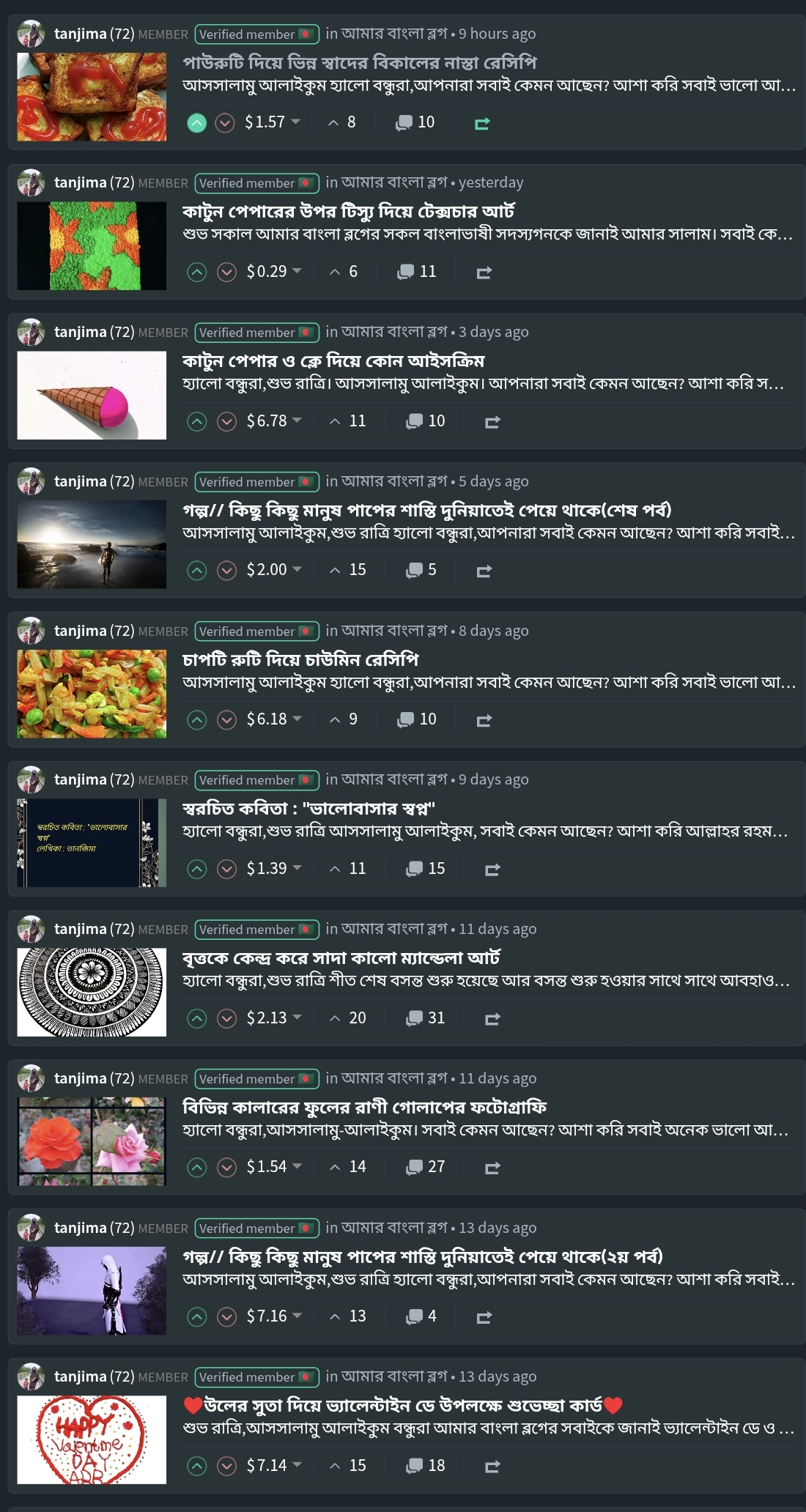 রেসিপি পোস্ট সব সময় আমার অনেক বেশি ভালো লাগে। এছাড়াও আজকের এই রেসিপি পোস্ট শুধুমাত্র একটি রেসিপি পোস্ট নয় বরঞ্চ একটি বিকেলের নাস্তা। যেটা আসলেই স্বাস্থ্যসম্মত এবং সকলেই অনেক বেশি পছন্দ করবেন। তিনি প্রত্যেকটি ধাপ অনেক চমৎকারভাবে এই পোস্টের মধ্যে বিশ্লেষণ করেছেন এবং খুব পরিকল্পিতভাবেই সাজিয়ে আমাদের মাঝে উপস্থাপন করেছেন। এছাড়াও তিনি তার পোষ্টের মধ্যে বাইরের খাবার সম্পর্কেও কিছু তথ্য শেয়ার করেছিলেন। বাহিরের খাবার আমাদের সকলের জন্যই অনেকটা বেশি ক্ষতিকর এর জন্য আমরা বাসার মধ্যে খুব সহজেই স্বাস্থ্যসম্মত নাস্তা তৈরি করতে পারি। তাই আমার কাছে এই বিষয়টি অনেক ভালো লেগেছে। সবকিছু বিবেচনা করে আজকের এই পোস্টটি ফিচার্ড পোস্ট হিসাবে মনোনীত করা হলো।