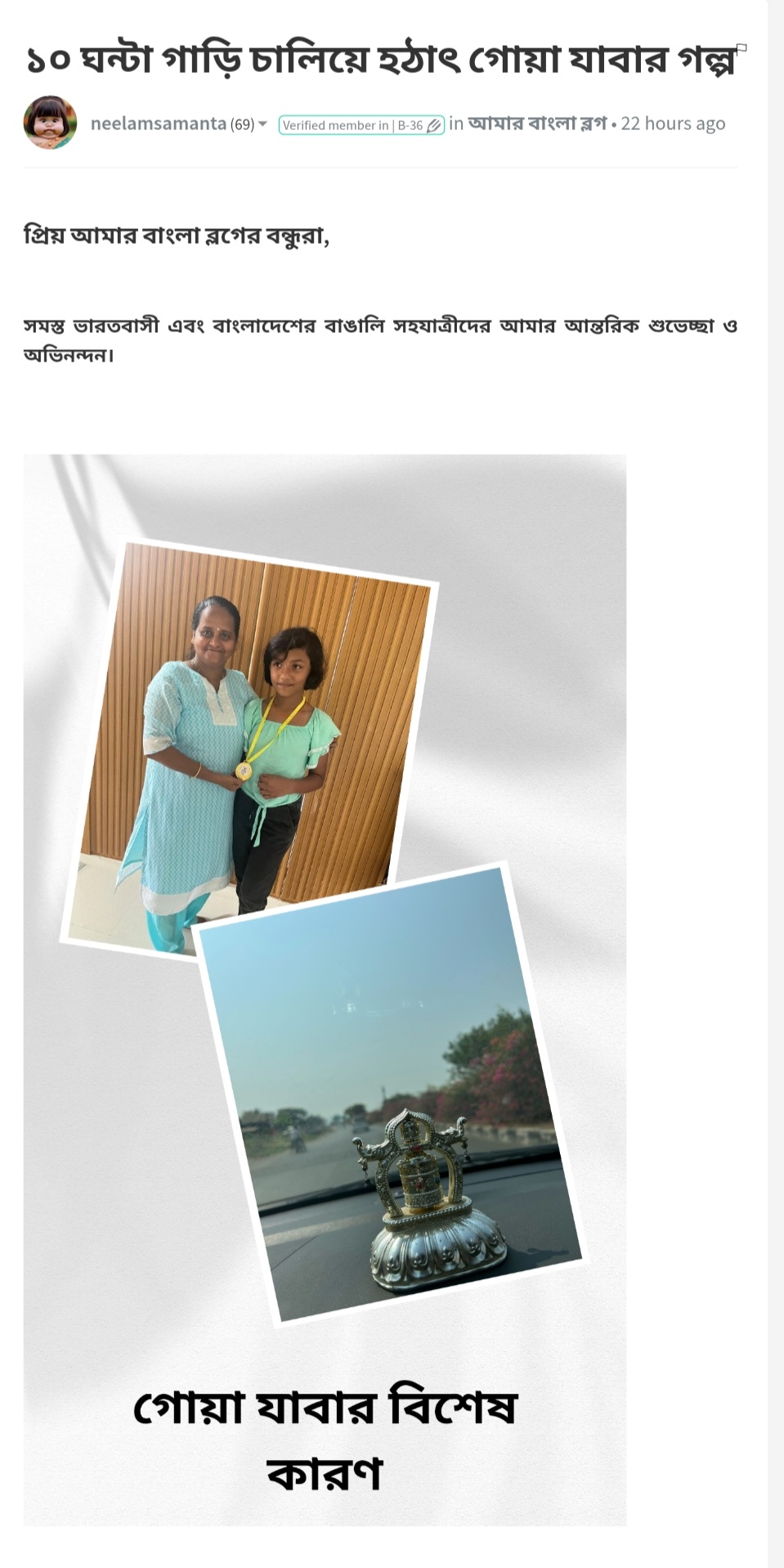 ১০ ঘন্টা গাড়ি চালিয়ে হঠাৎ গোয়া যাবার গল্প by @neelamsamanta ( date 24.03.2025 )