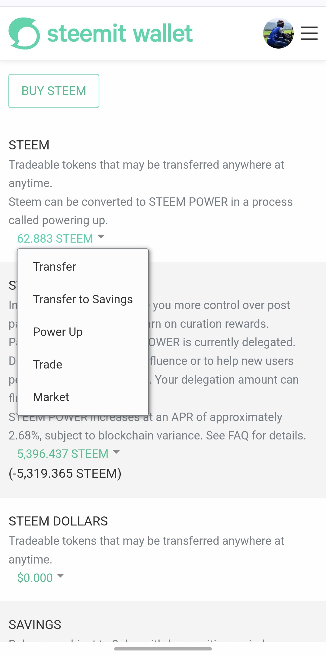 পাওয়ার আপ করার পূর্বে আমার ওয়ালেটের স্ক্রিনশর্ট। আমি এখন 50 স্টিম পাওয়ার আপ করবো।