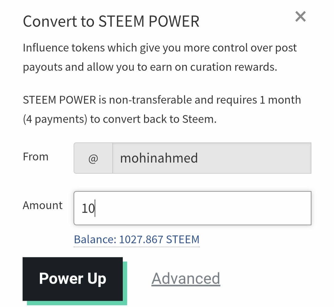 প্রতিদিনের মতো আজকেও আমি আপনাদের সামনে আরো একটি নতুন পোস্ট নিয়ে হাজির হয়েছি। আজকে আমি আপনাদের সাথে পাওয়ার আপ পোস্ট শেয়ার করবো। আজকে আমি ১০ স্টিম পাওয়ার আপ করেছি। আমি চেষ্টা করি নিয়মিত পাওয়ার আপ করার জন্য। কারণ পাওয়ার আপ এর মাধ্যমে আইডির সক্ষমতা বৃদ্ধি পায়। এই প্লাটফর্মে দীর্ঘমেয়াদি কাজ করার জন্য পাওয়ার আপ এর কোনো বিকল্প নেই। তাইতো পাওয়ার আপ করতে আমি খুব ভালোবাসি। যাইহোক আজকে আমি কিভাবে ১০ স্টিম পাওয়ার আপ করলাম,সেটা ধাপে ধাপে আপনাদের সাথে শেয়ার করতে যাচ্ছি। আশা করি আপনাদের কাছে খুব ভালো লাগবে।