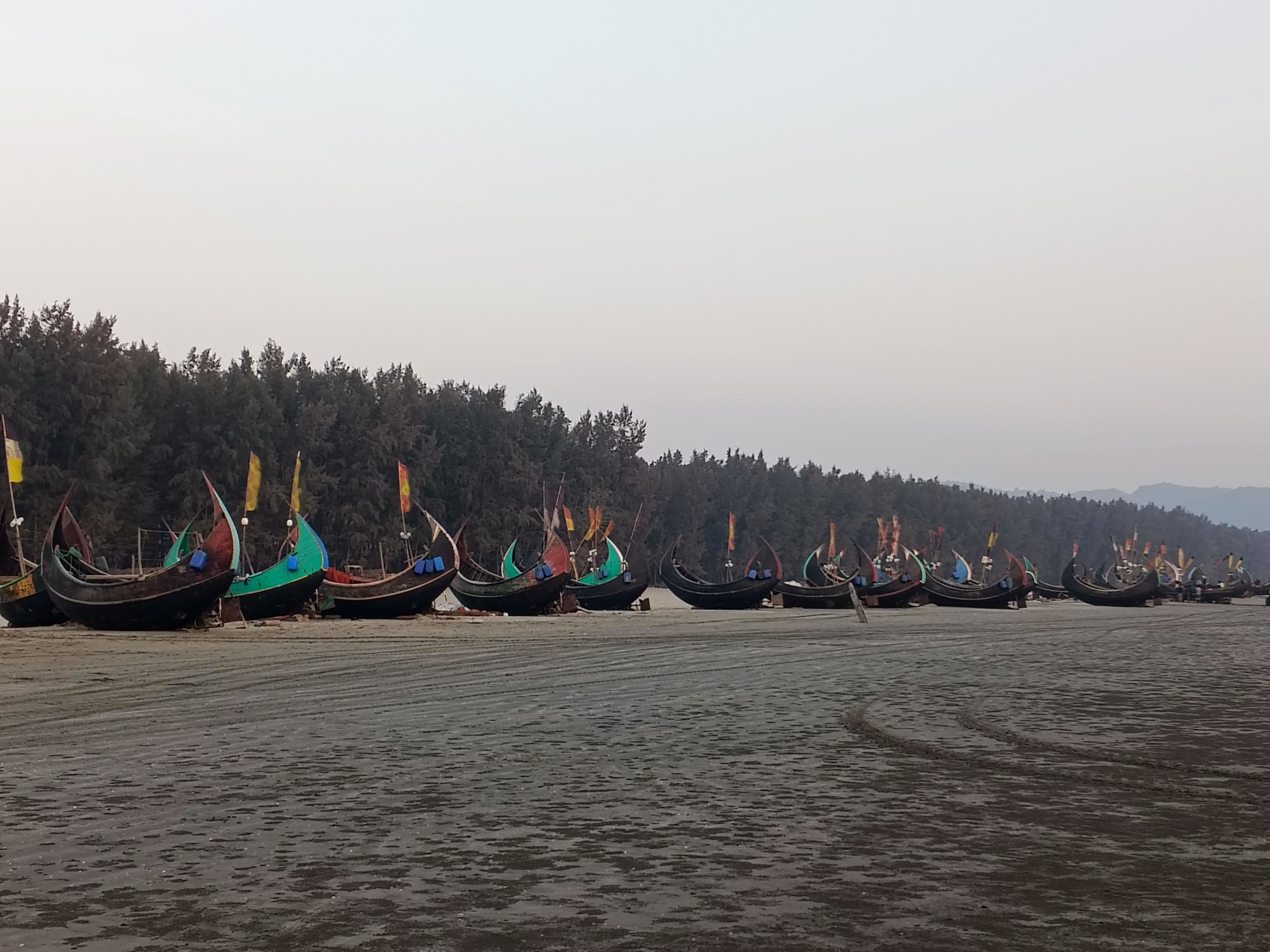 সমুদ্রের ধারে এক জায়গায় এমন ভাবেই সারিবদ্ধ হয়ে রাখা ছিল শাম্পান গুলি। অসাধারণ এই দৃশ্য ক্যামেরায় বন্দি না করে উপায় ছিল না। ছবিতে যা দেখাতে পেরেছি, চোখের সামনে তার রূপ আরও অনুপম। এই মনোরম পরিবেশে এমন খালি নৌকাগুলি যে আবহের সৃষ্টি করেছে, তা যে ভাষাতেই প্রকাশ করার চেষ্টা করি, কম পড়ে যায়।