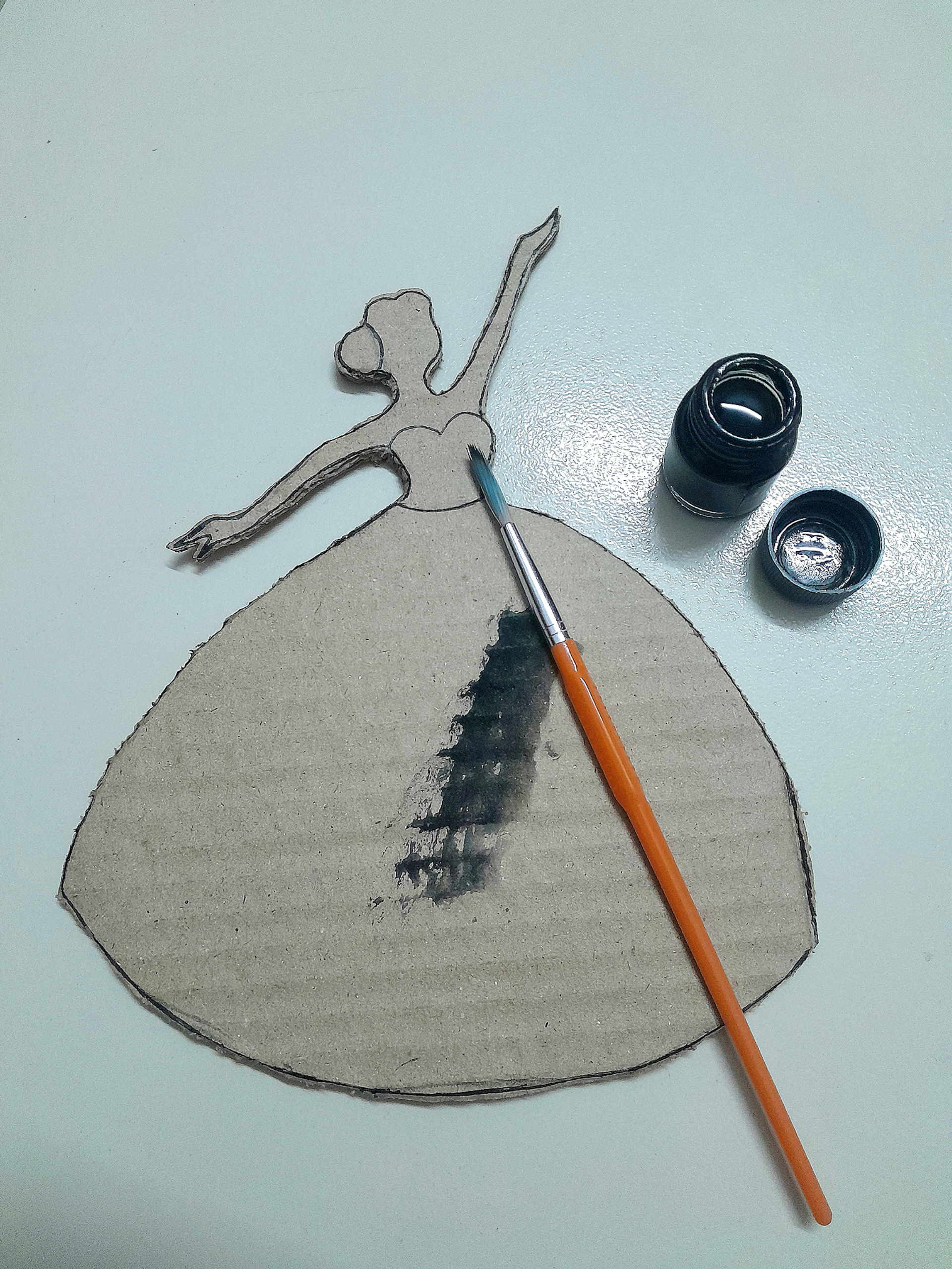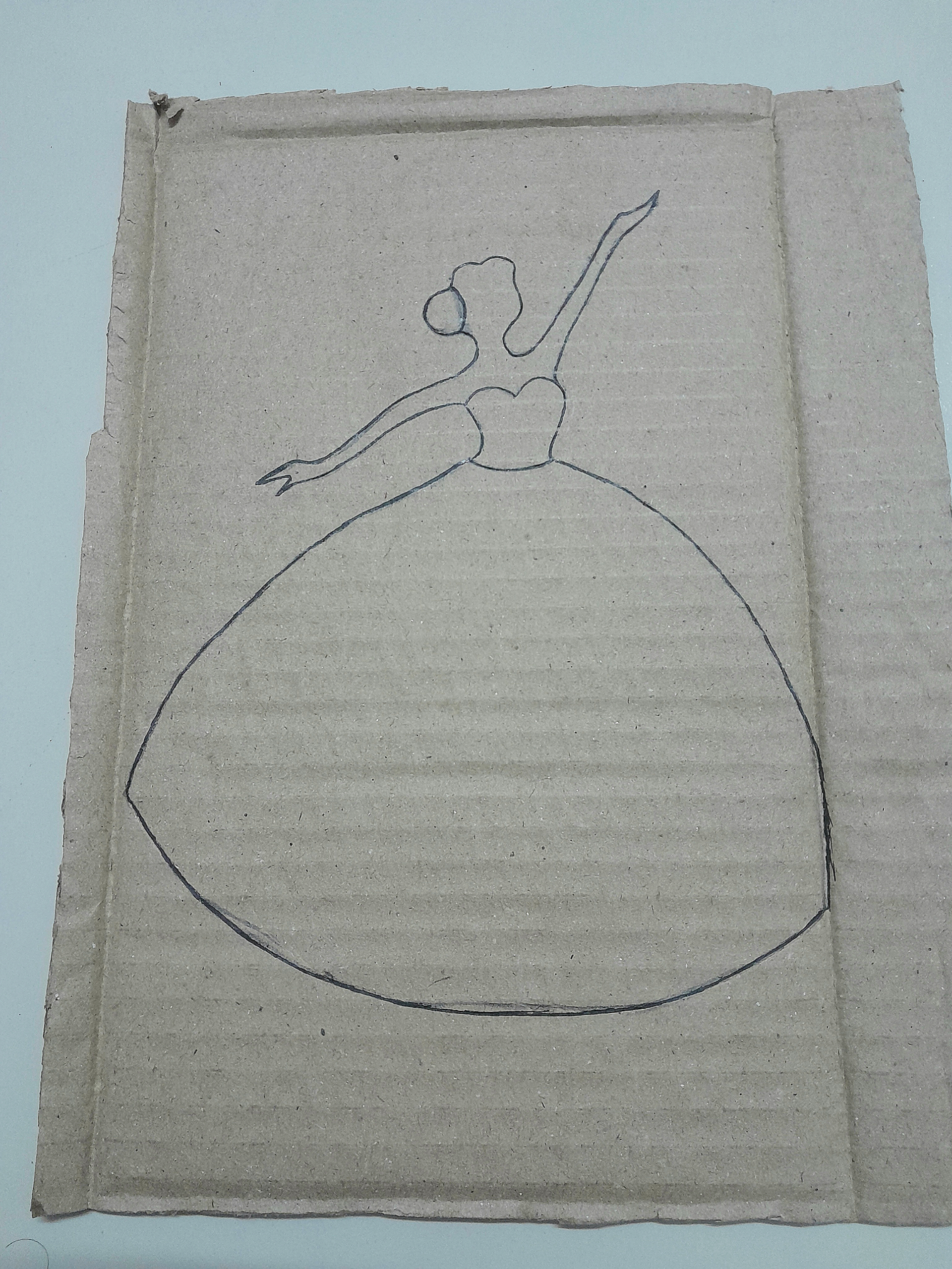প্রথমে একটি কার্ড বোর্ড এর উপর কালো মার্কার পেনের সাহায্যে একটি মেয়ে নৃত্য করছে এমন দৃশ্যের চিত্রাঙ্কন করে নিলাম।
