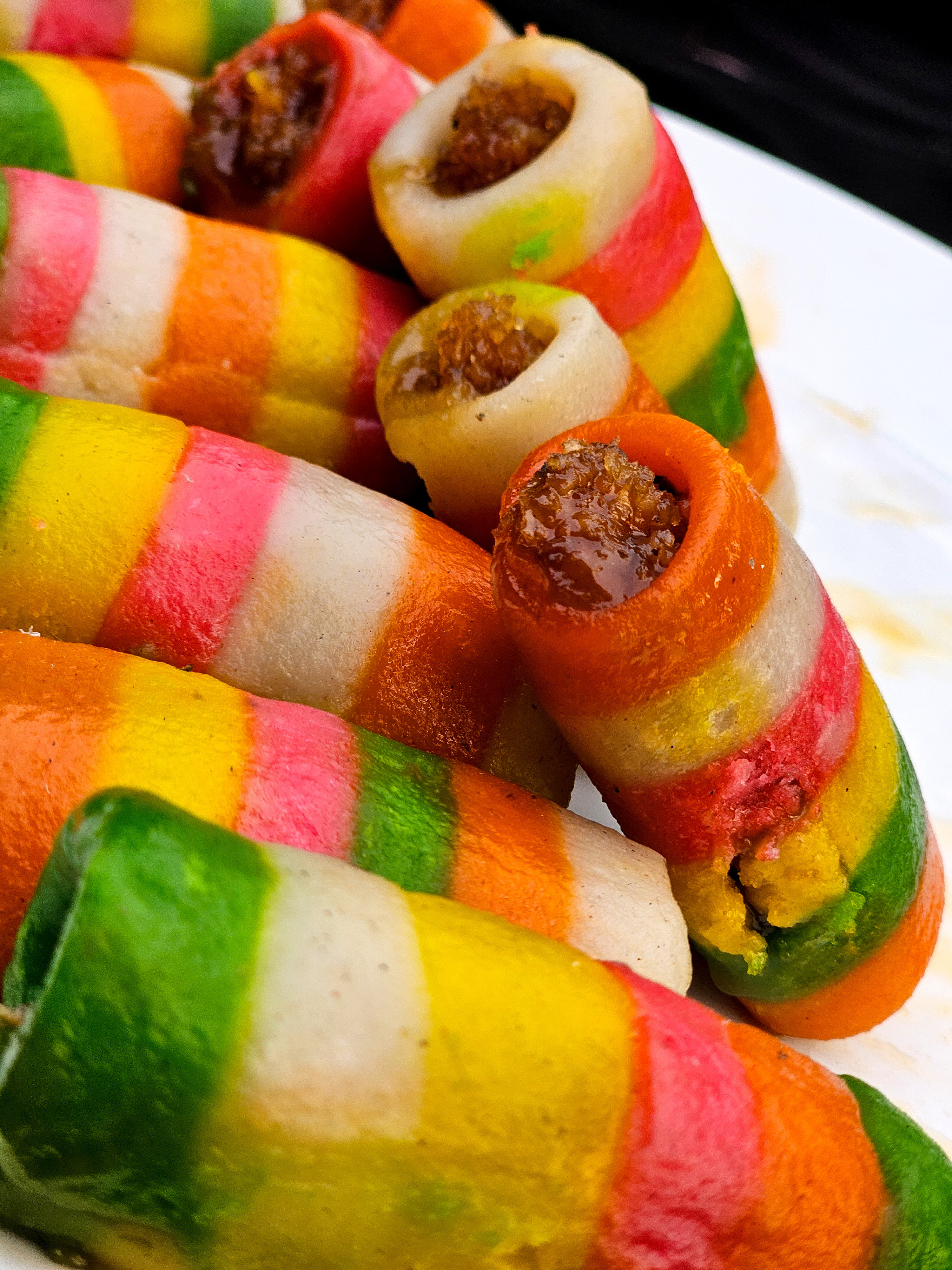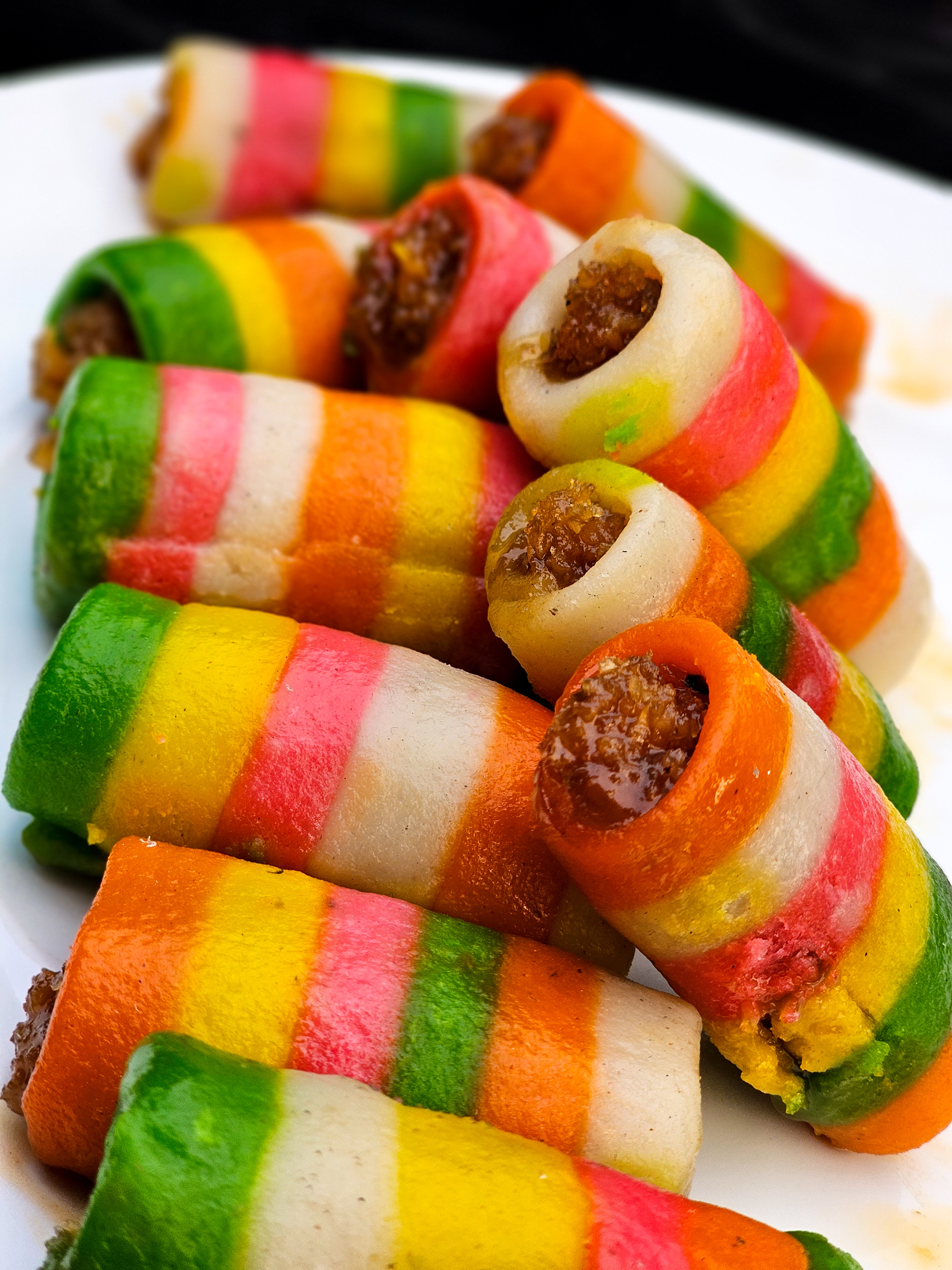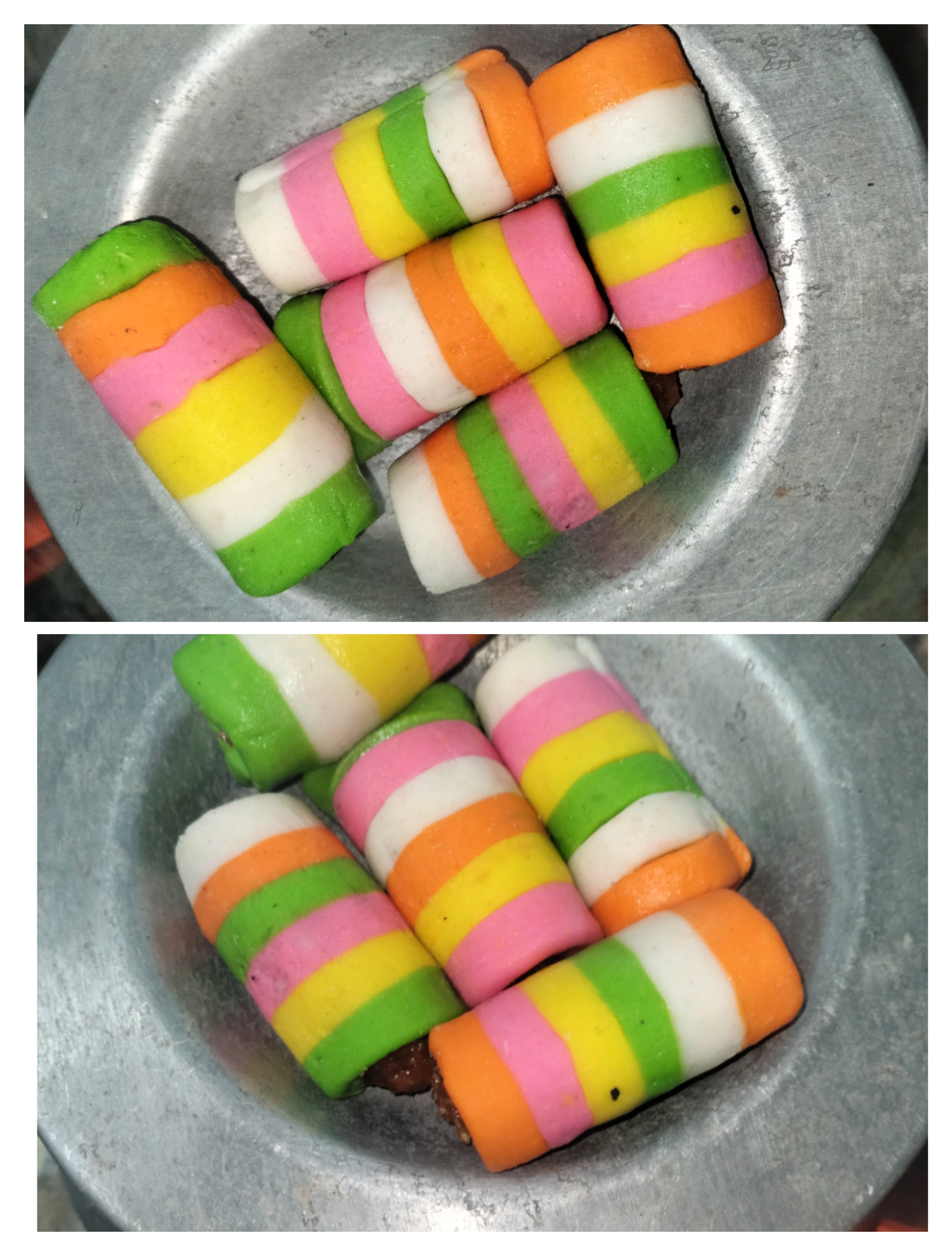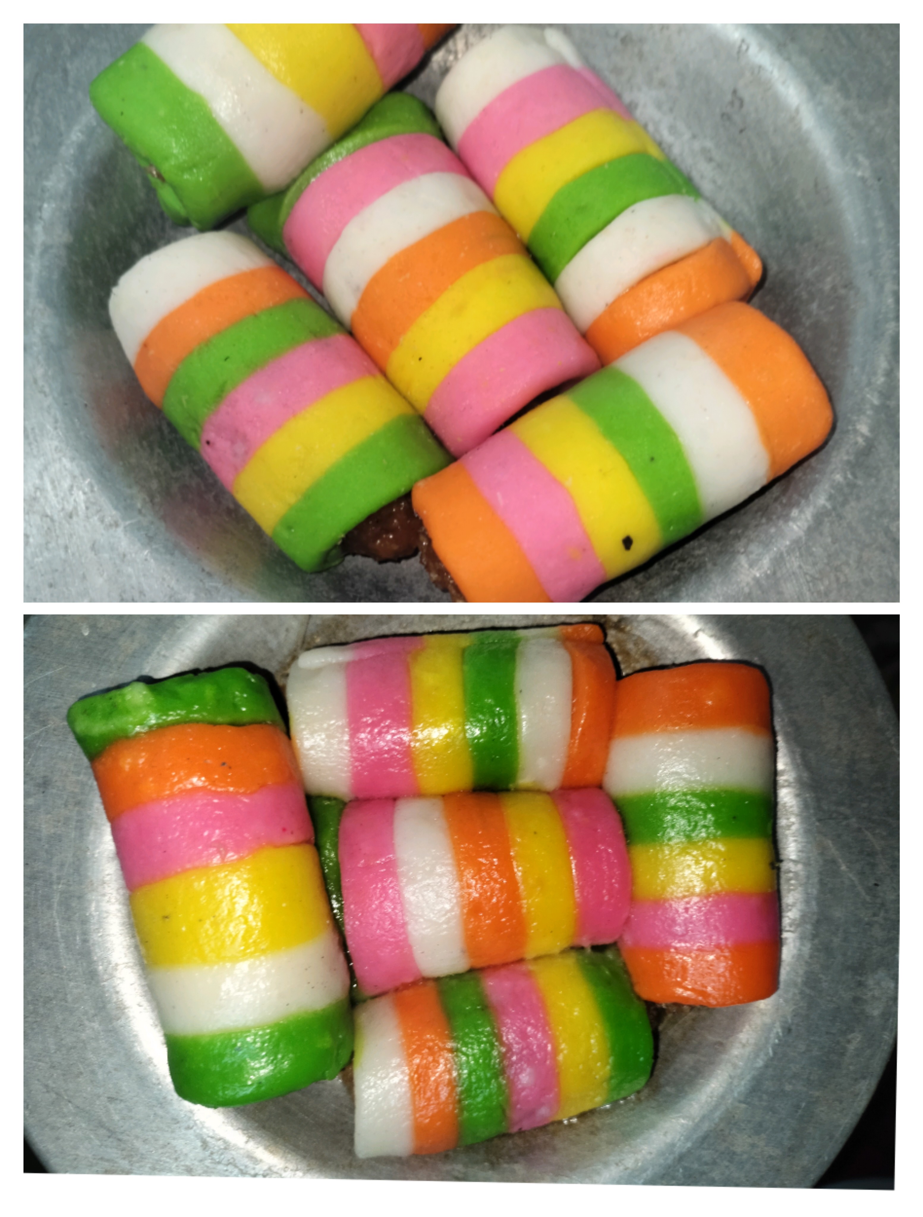 কিন্তু এবার কি পিঠা তৈরি করবো এর কোন আইডিয়া পাচ্ছিনা। অনেক চিন্তা ভাবনা করে একটা পিঠা তৈরি করার চিন্তা করলাম। আমার কাছে আসলে যে কোন জিনিস কালারফুল পছন্দ। তাই জন্য ভাবলাম রংধনু কালার দিয়ে কিছু একটা করবো। তবে এর মাঝে পিঠার ফ্লেভারটা আসতে হবে। পিঠা তৈরিতে গুড় এবং নারিকেল ব্যবহার করলে মজাটা একটু বেশি হয়। তার জন্য আমিও তৈরি করতে বসে পড়লাম। তবে পিঠাগুলো তৈরি করতে একটু বেশি কষ্ট হয়েছিল। অনেকগুলো কালার মিক্স করে আবার সেগুলো একটার সাথে একটা জোড়া লাগতেছিল না। অনেক কষ্ট করে এগুলোকে জোড়া লাগিয়েছিলাম। তবে পিঠাগুলো ভাপে দাওয়াতে বেশি ভালো লেগেছে খেতে। সত্যি আমাদের পরিবারের সবাই বেশ মজা করে খেয়েছে। আশা করি আপনাদেরও রেসিপিটা ভালো লাগবে।