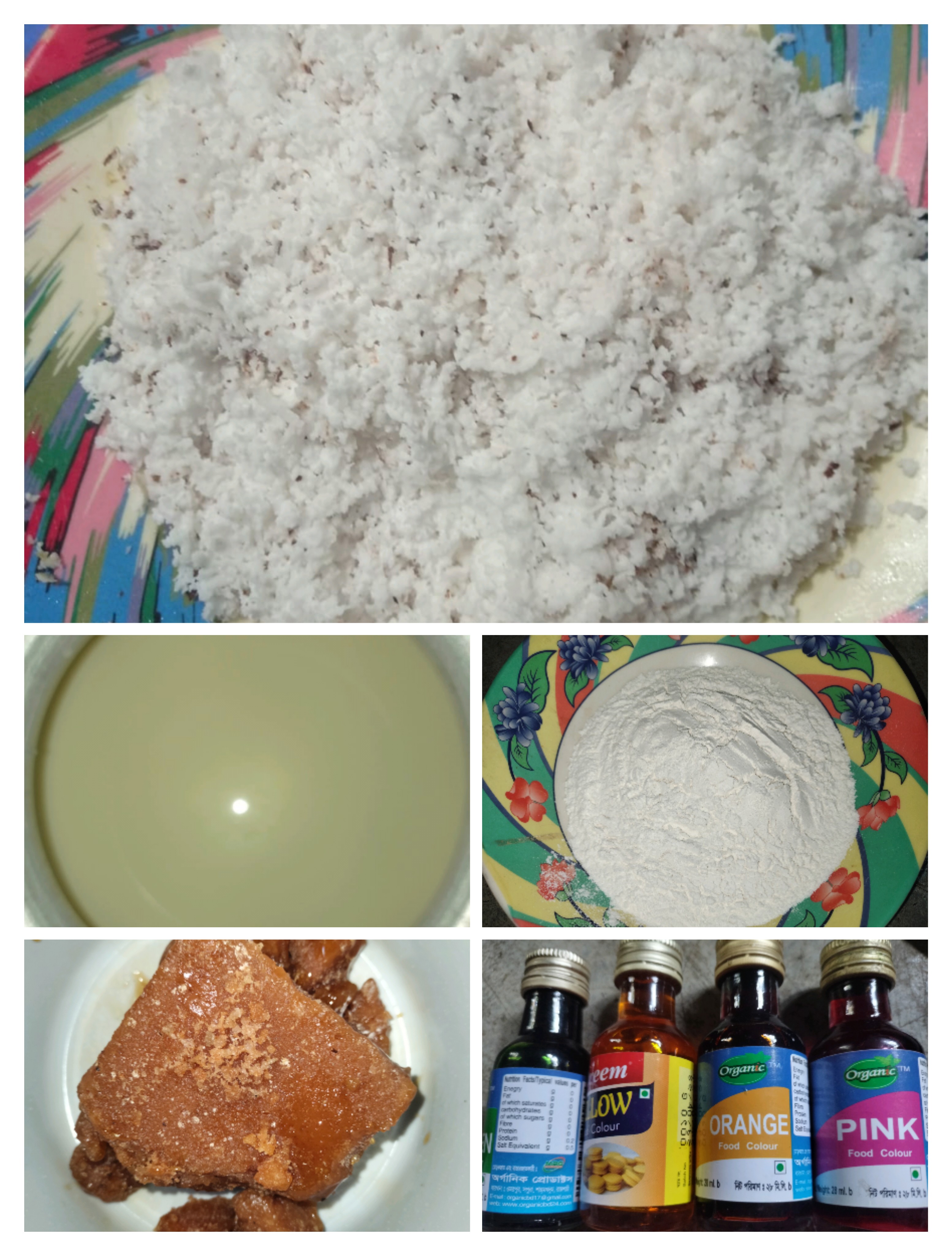 | সবুজ, হলুদ , গোলাপী, কমলা ফুড কালার | কয়েক ফোঁটা |