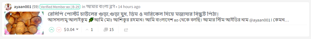 প্রত্যেক ইউজারের পোষ্টের মধ্য থেকে বাছাই করে আজকে অসাধারণ একটি পোস্ট ফিউচার আর্টিকেল হিসেবে শেয়ার করা হয়েছে। আসলে আশিক মামা বেশ দারুন কিছু পোস্ট করেছে এই সপ্তাহে যেগুলো অত্যন্ত ভালো ছিল। আসলে বিস্কুট পিঠা খেতে প্রত্যেকের কাছেই বেশ সুস্বাদু লাগে। ধন্যবাদ এত সুন্দর একটি পোস্ট বাছাই করে আমাদের মাঝে শেয়ার করার জন্য।