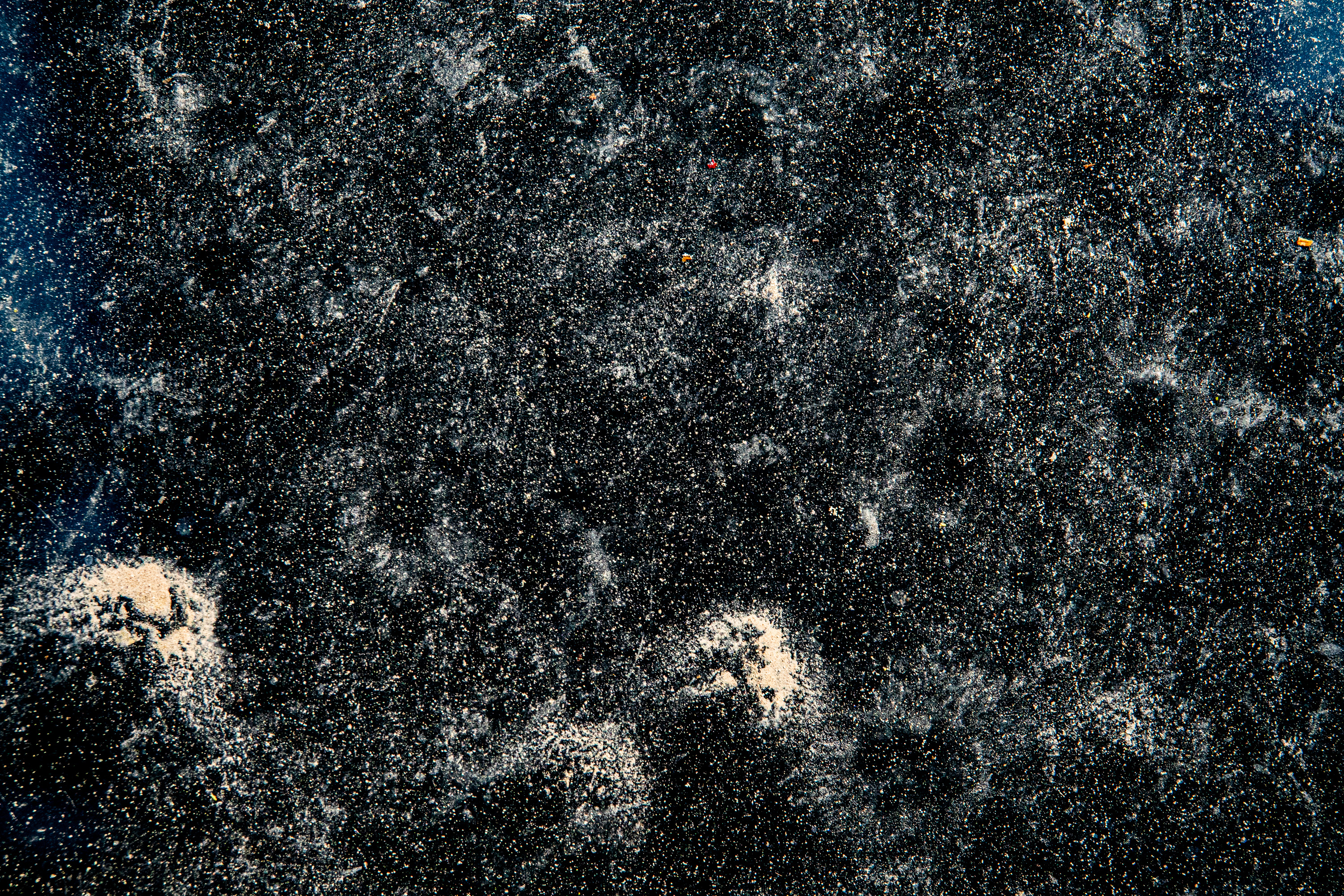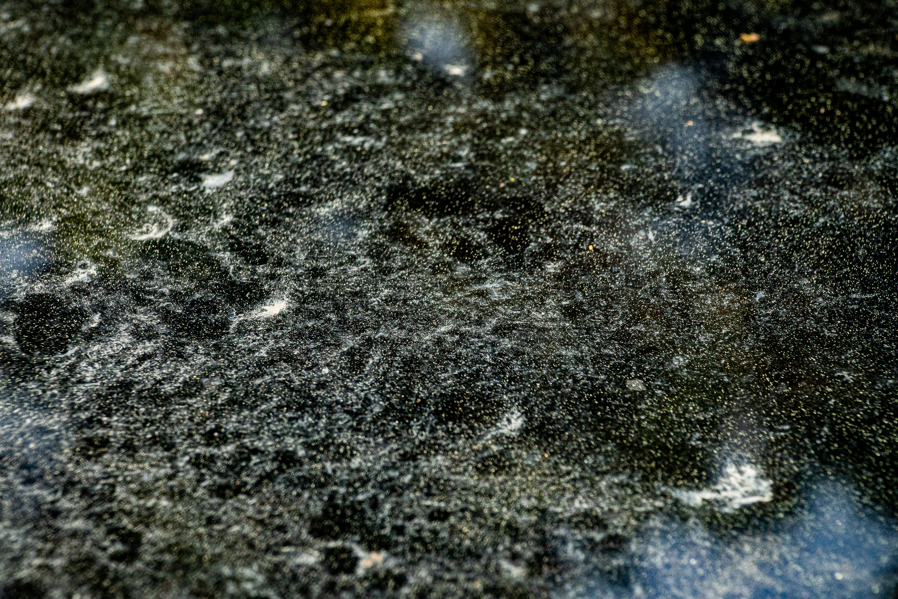 In springtime there is a real explosion of pollen from some trees in our garden. The fine white and yellow dust settled on our glass table and depending on the wind, rain, cleaning cloth and time, new and fascinating structures were formed that I captured with high contrast with the camera. Here is a selection of these "astronomical" images, which reflect the principle of self-similarity in nature .....