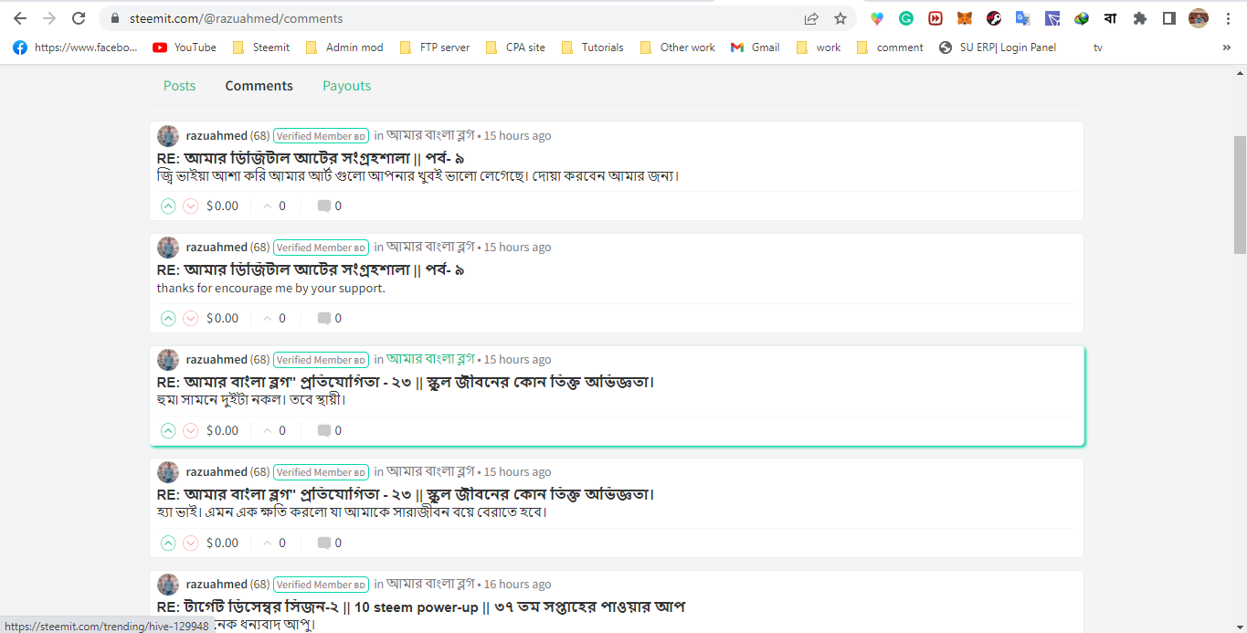 এখানে সব কমেন্ট কিন্তু চেক করা যায়। আপ্নারা চাইলে ওই ওয়েবসাইট থেকে একটিভিটিস দেখেও এগুলো চেক করতে পারেন।