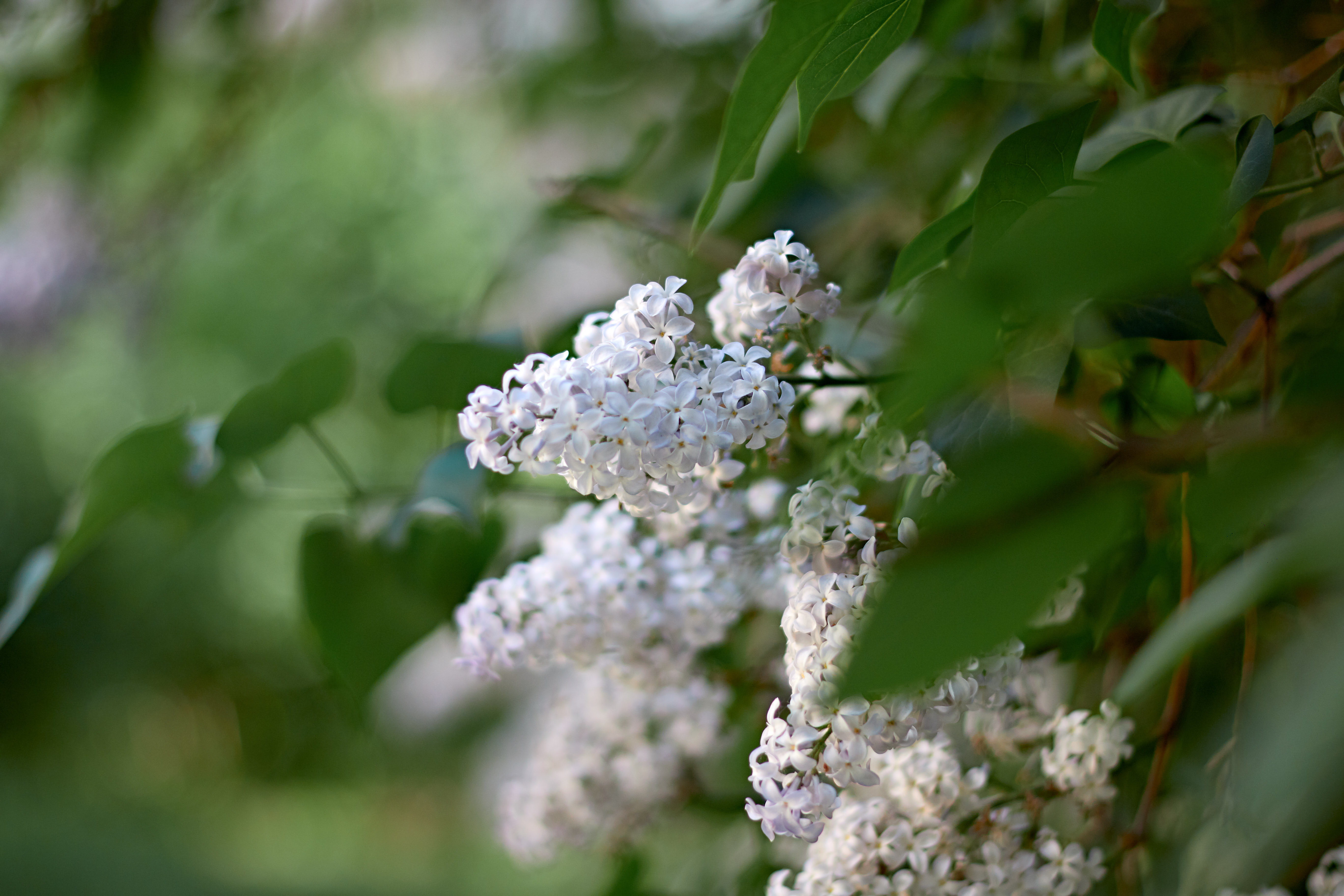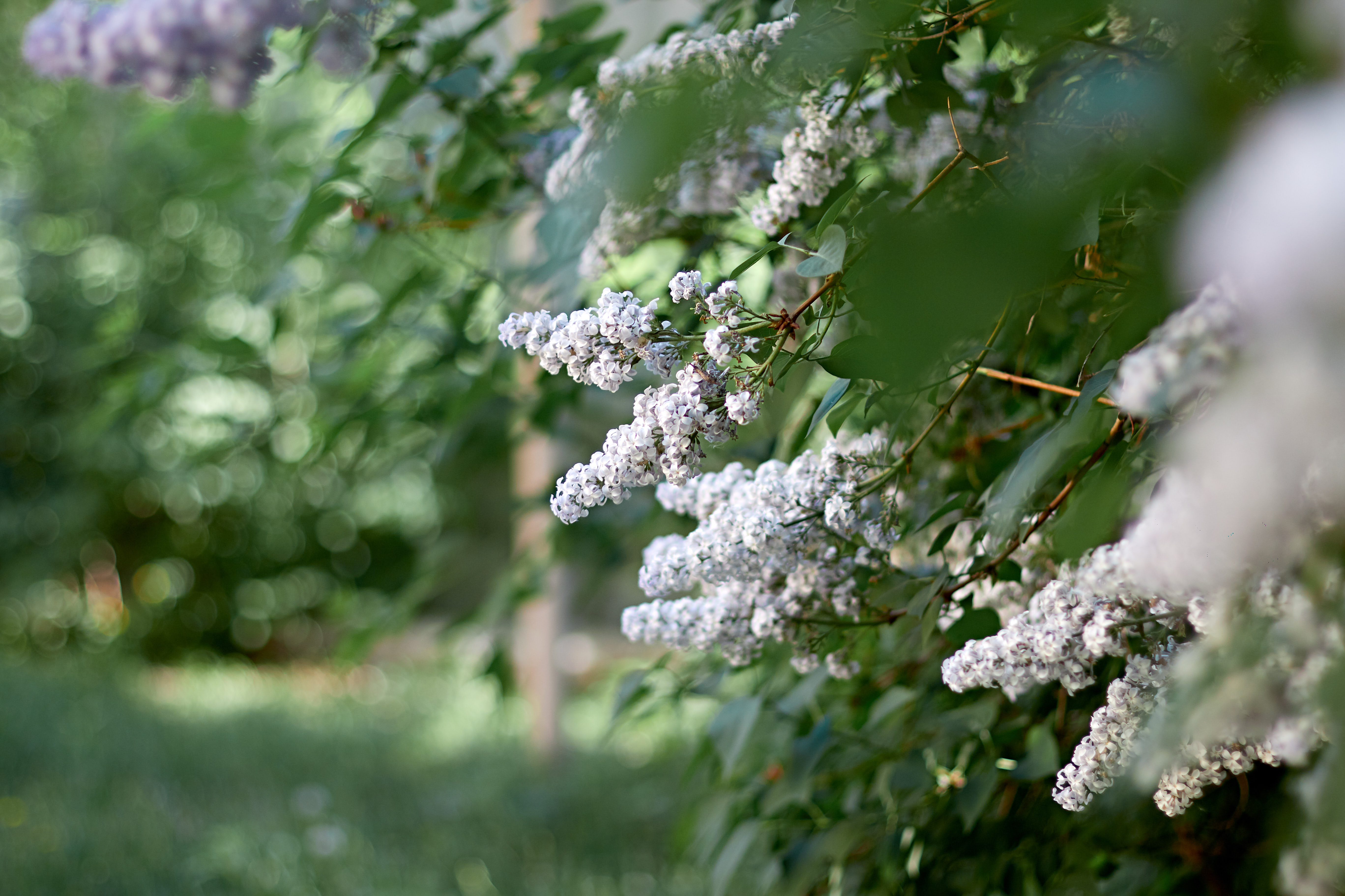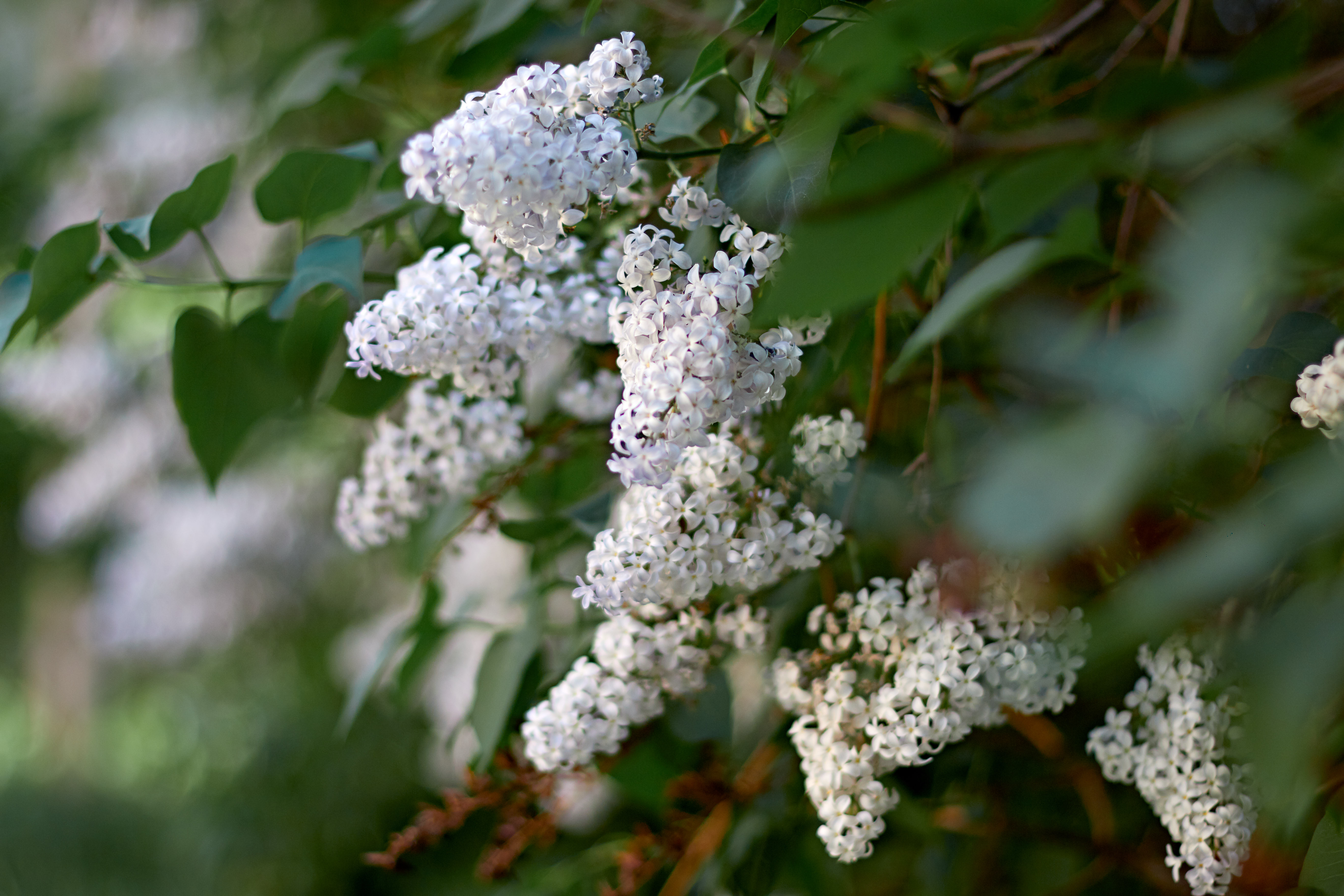 I am just in awe of the white lilac. I took some photos with nice bokeh in the foreground. White lilac has acquired a certain tenderness and cute appearance.
