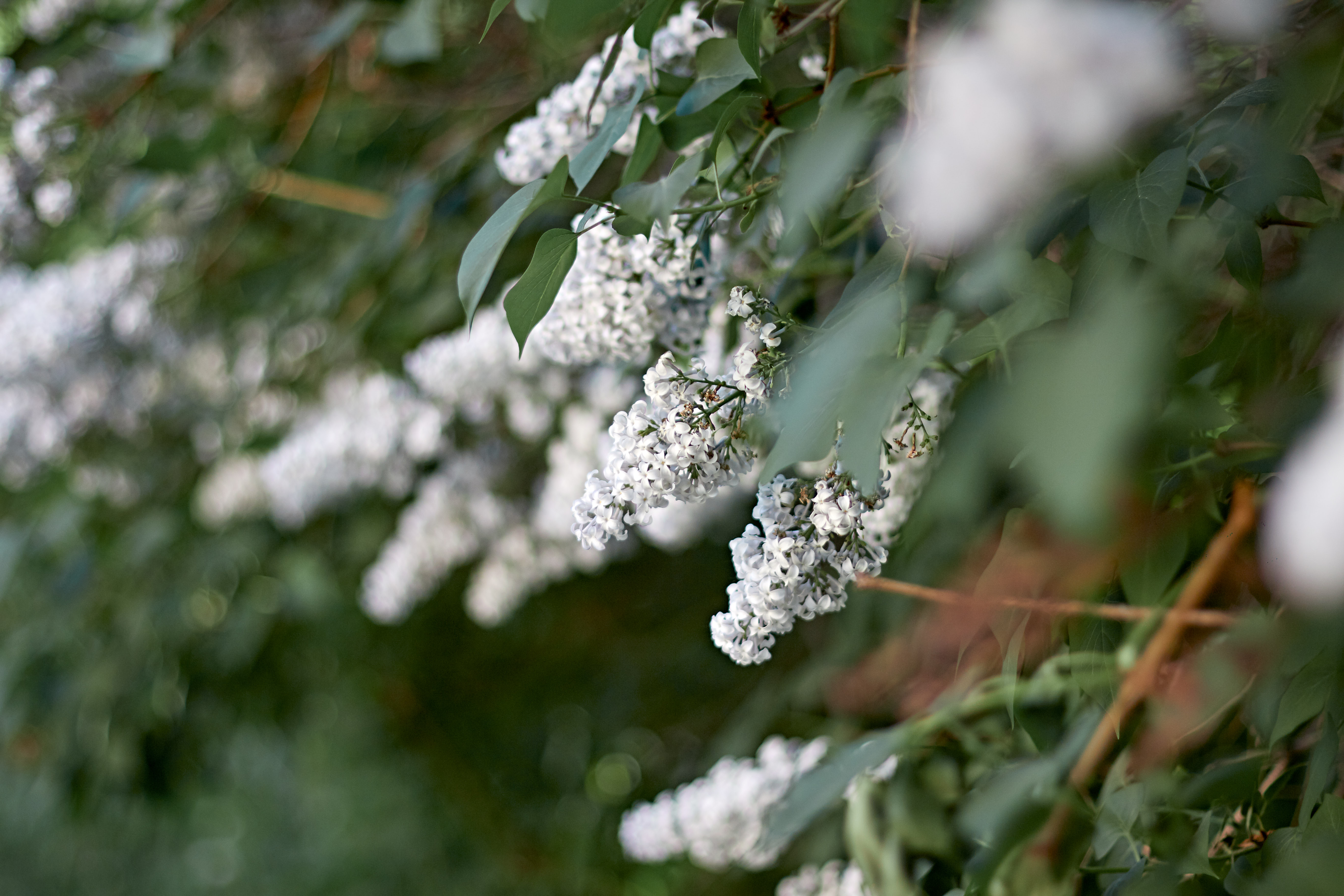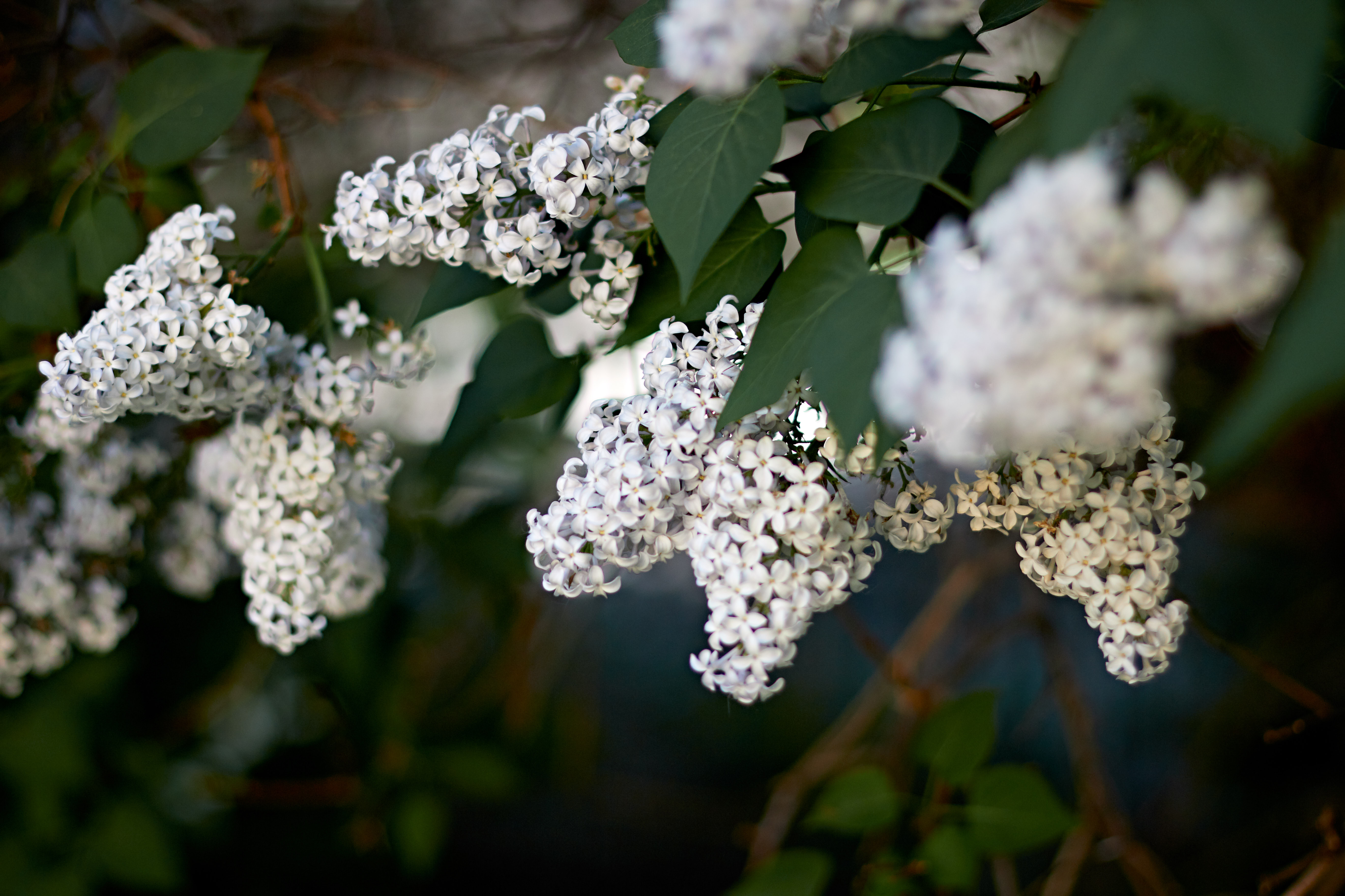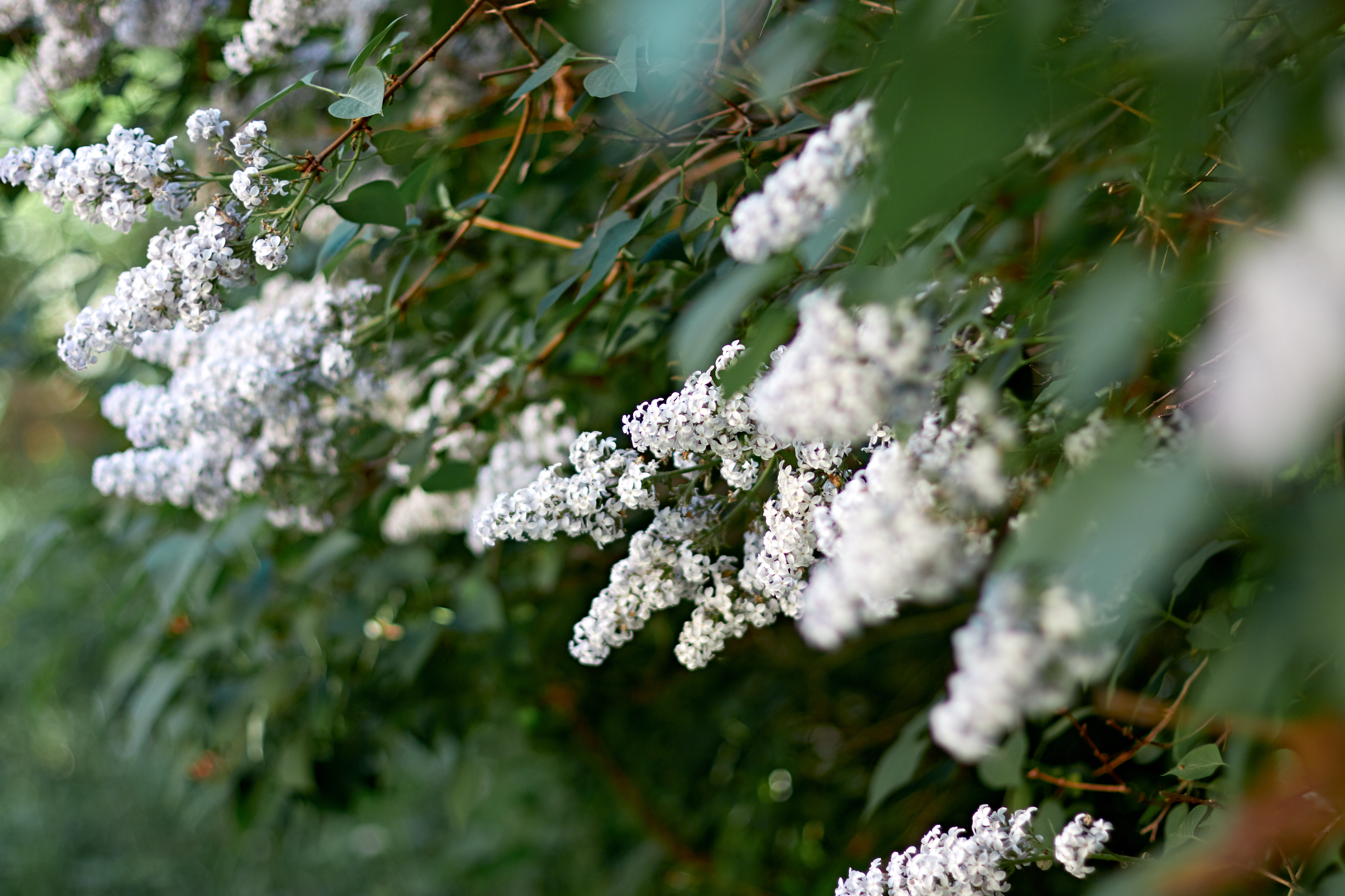 I am just in awe of the white lilac. I took some photos with nice bokeh in the foreground. White lilac has acquired a certain tenderness and cute appearance.