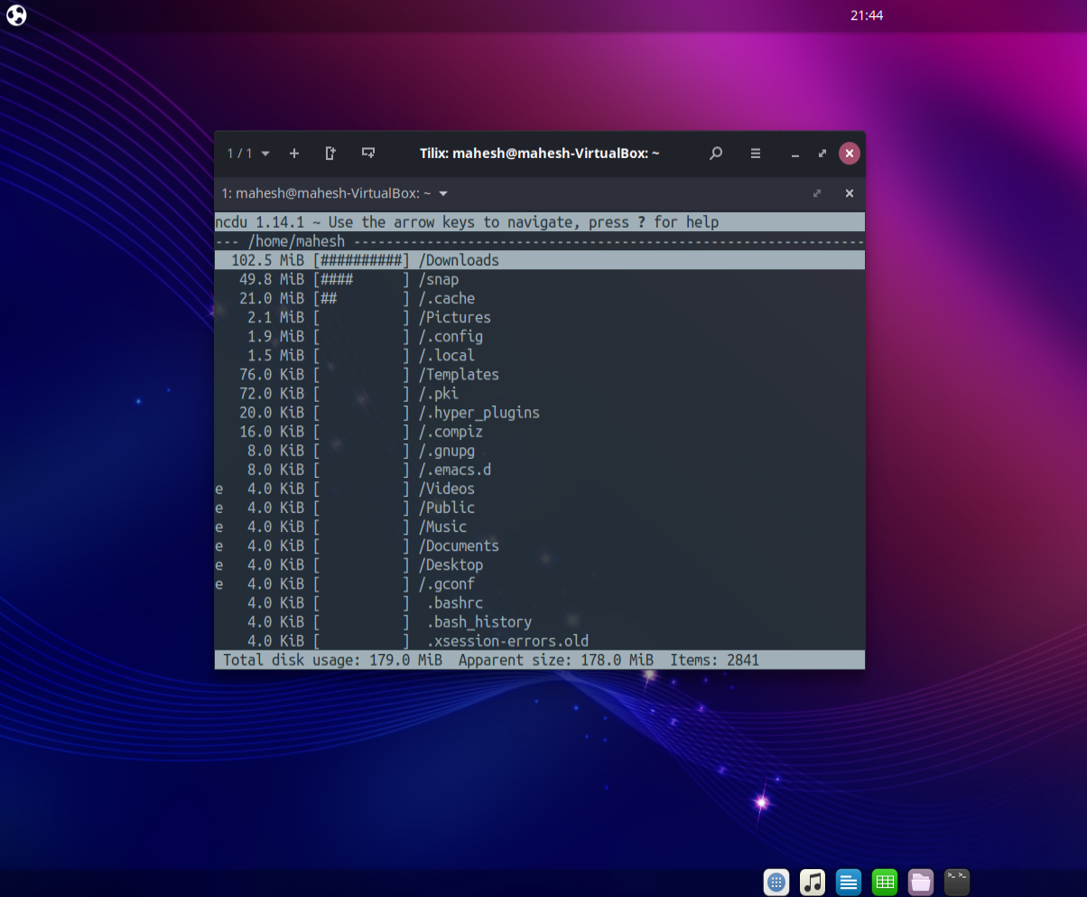 There is another one small utility that you can use with the terminal. This is ncdu command which allows you to check out the disk usage in the terminal.