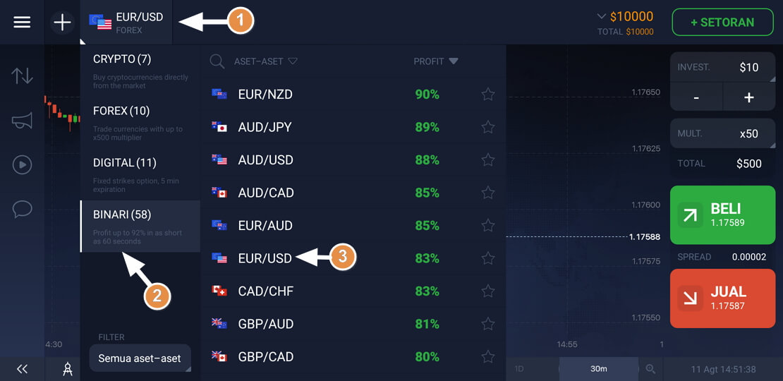 - anda pilih aset yang akan anda perdagangkan/ anda trading
