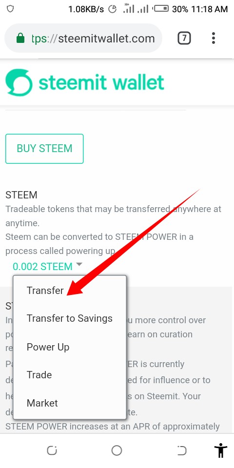 Click on your wallet, you then click on steem then you Click on the transfer icon
