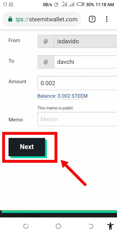 Then you chose the username that you want to send it to. Make sure you type correctly, add amount you're transferring and click next.