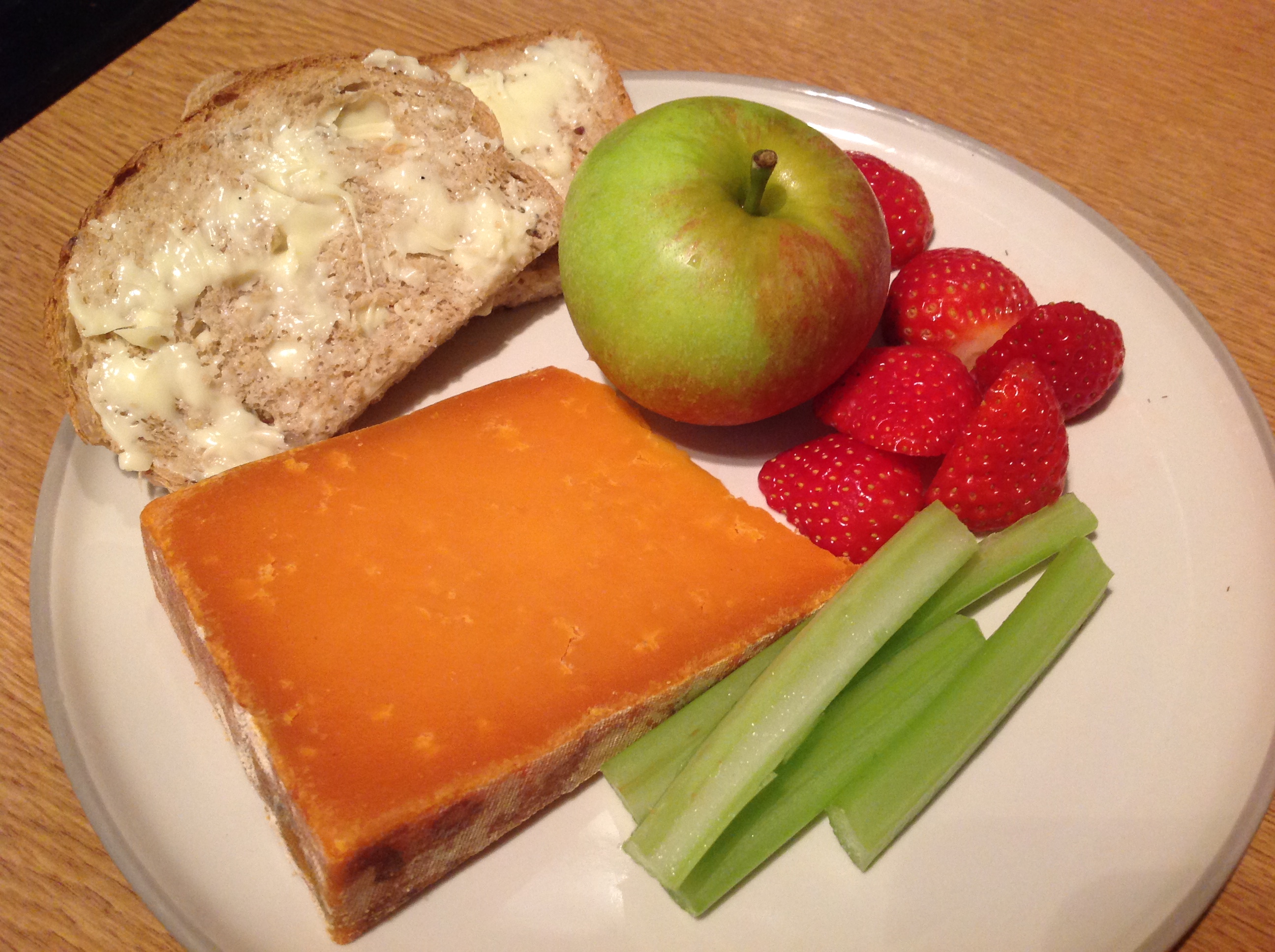 Farmhouse Red Leicester made in Rutland. It had a lovely taste, almost like burnt toffee. The bread was from Paul's Bakery and the apples are Early Windsors grown in Suffolk.