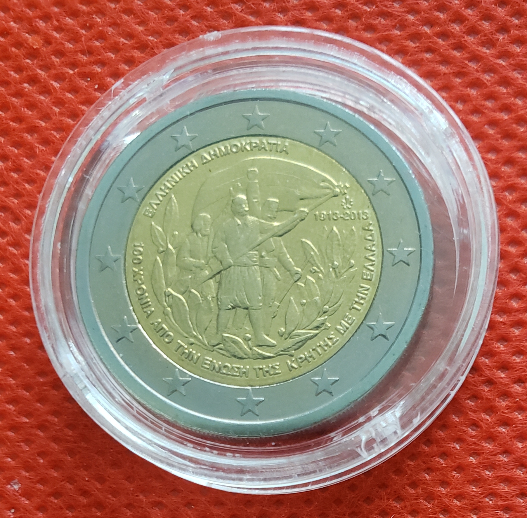 - 750 - Greecezhuping (76)in #actnearn • 4 years ago Greece 100th Anniversary of the Union of Crete and Greece 2 Euro 2013 8.5g Bimetallic: nickel brass clad nickel center in copper-nickel ring #zzan #dblog #steemegg