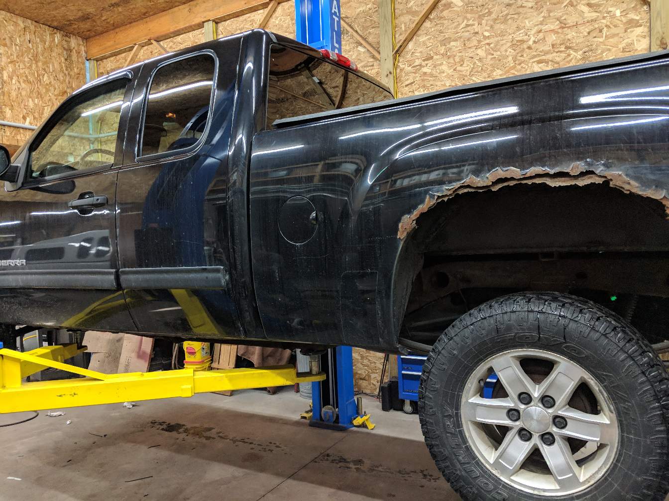On top of that as you can see in the picture the bed is rusting out. Again on this particular model they put foam in the fenders to reduce noise. Little did they realize the foam would absorb moisture and rust the body from the inside out.