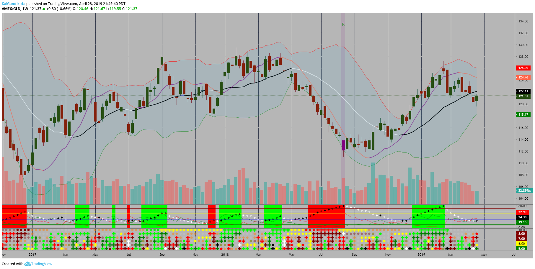 Note: Kal's MTF ADX Rangoli Roller is the lower Plot. The upper plot is KAL’s ADX Overlap Technical Study with MACD Filter(https://steemit.com/pinescript/@chipmaker/pine-script-for-kal-s-adx-overlap-technical-study-with-macd-filter)