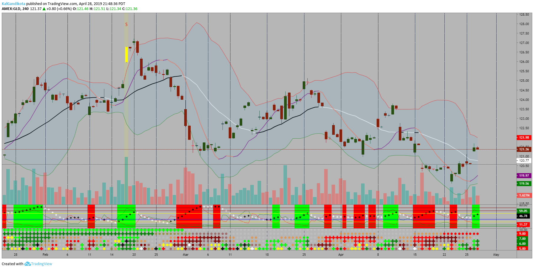Maroon cross implies Trending Strong Downward for that time-frame (second phase near exhaustion)
