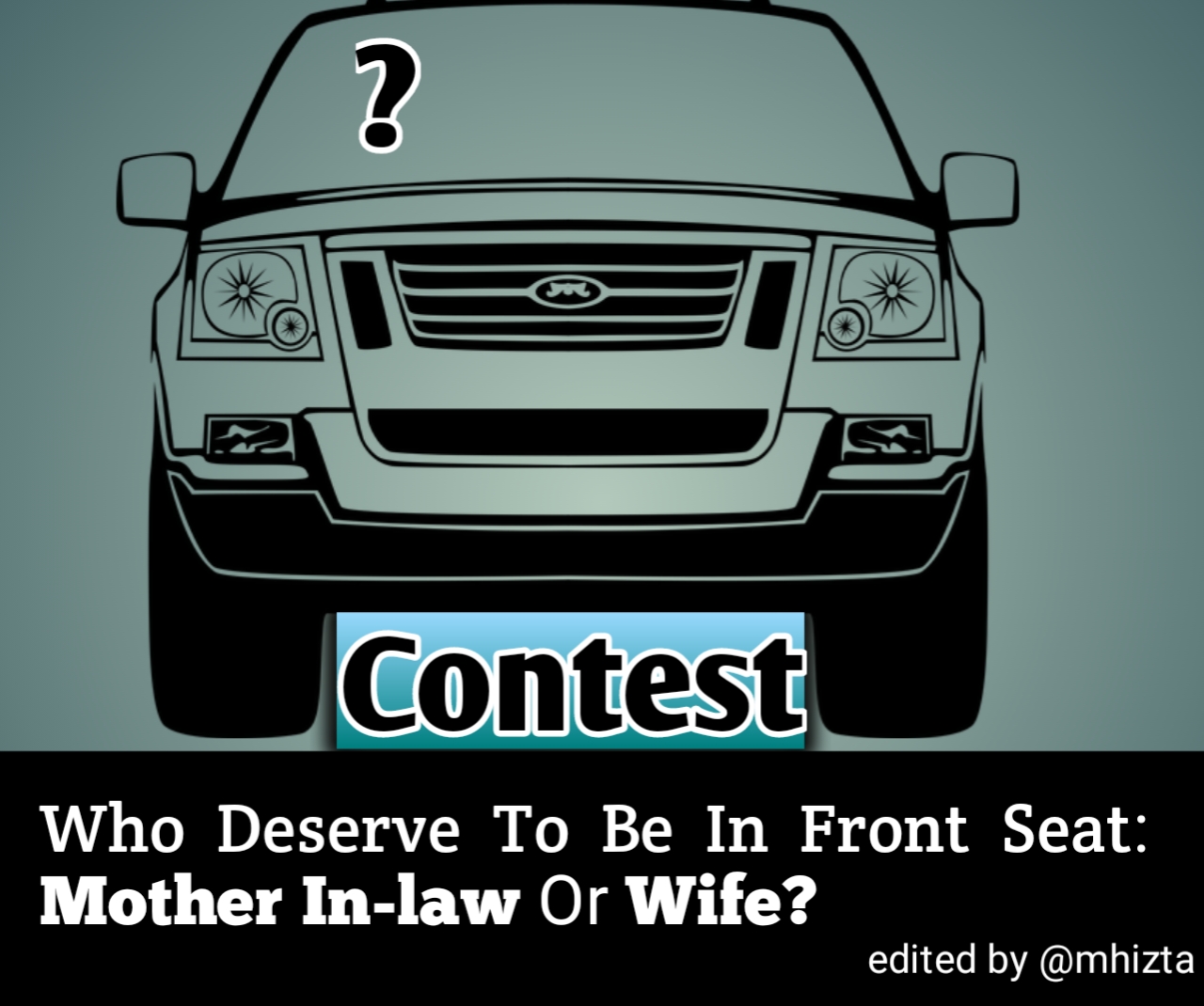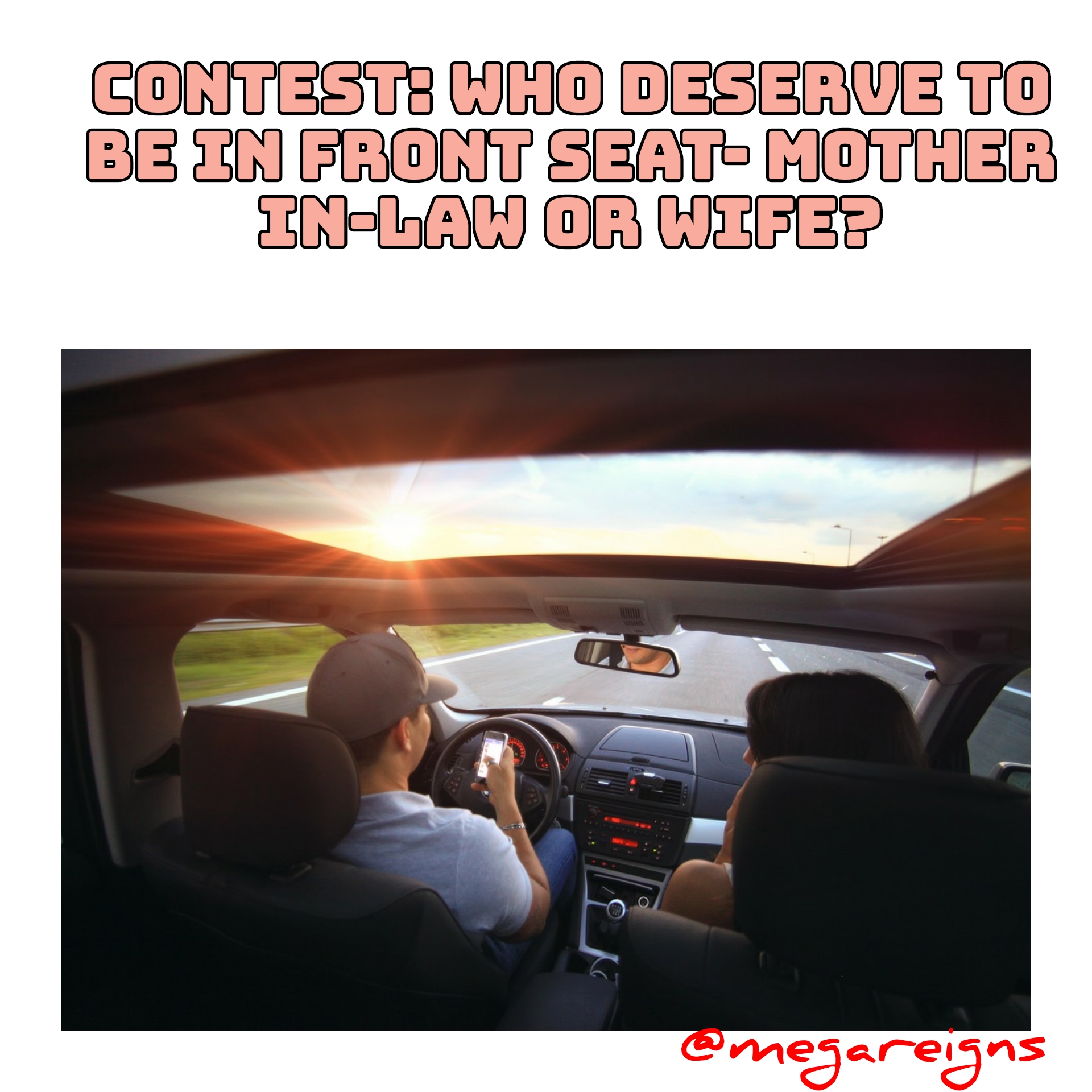 • The title of the post should be "Contest: Who Deserve To Be In Front Seat- Mother In-law Or Wife?".