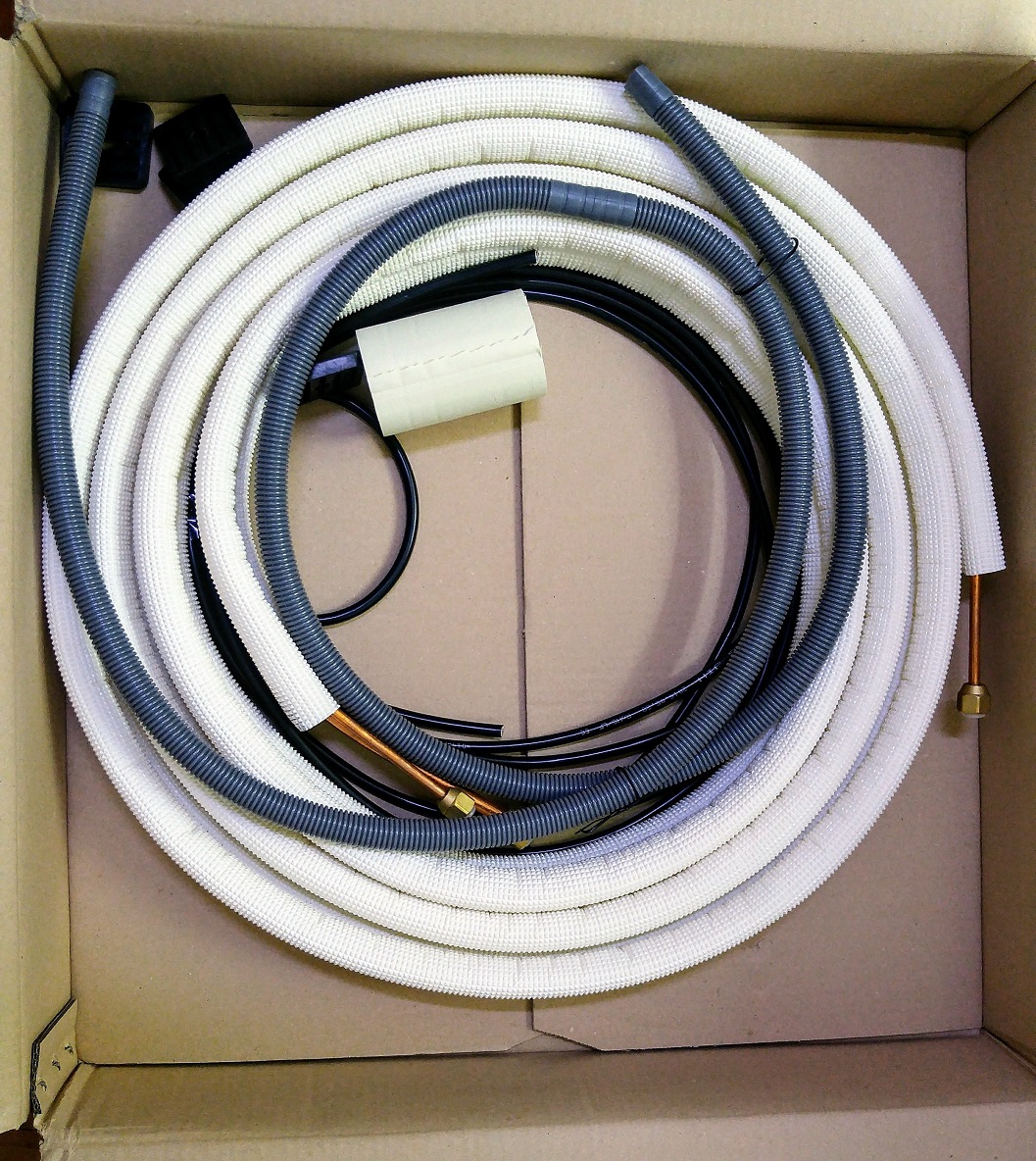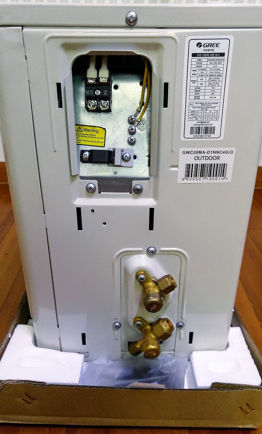 인버터 기술이 적용된 실외기를 구입하고 싶었으나 자가 설치 가능한 제품은 아예 판매가 되지 않더군요. 어쩔 수 없이 중국제(GREE) 정속형 에어컨을 구입했습니다. 설치 자재는 포함되어 있습니다.