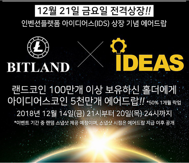 아이디어스코인 21일 비트랜드 첫상장!!!!~~~~