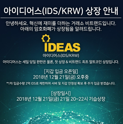 아이디어스 코인 오늘 상장!!!!~~비트랜드에서~~~~