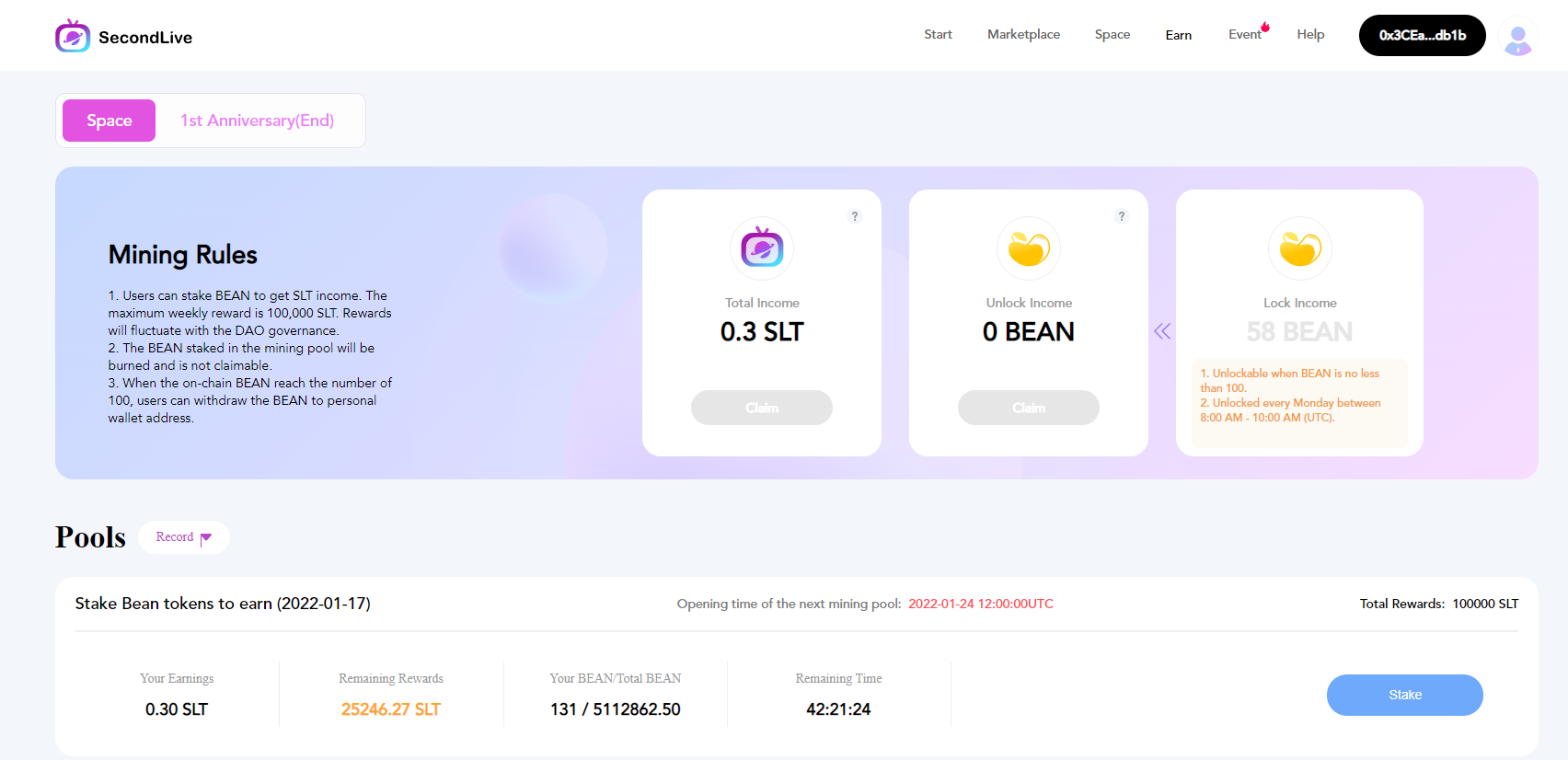 Users with beans can participate in staking and obtain SLT tokens.