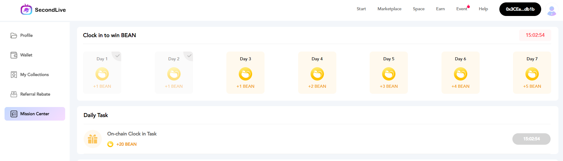 - You can earn 20 + X BEANs per day by logging in and clicking on the right, from the mission center in your profile