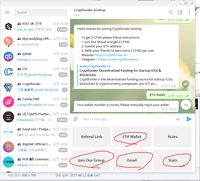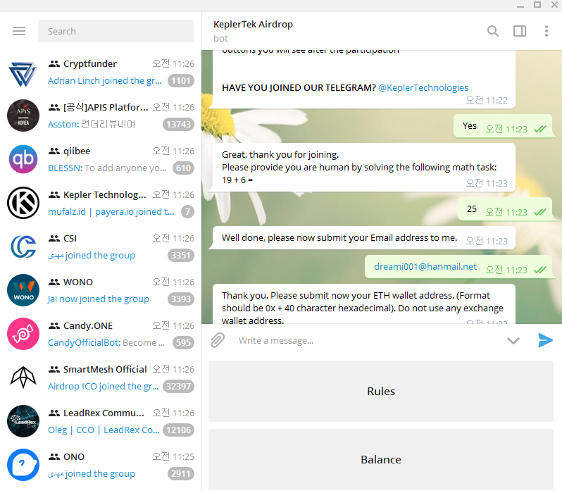 텔레그램방은 보통 에어드랍용 봇 방과 전체 사용자 그릅방에 초대하는데