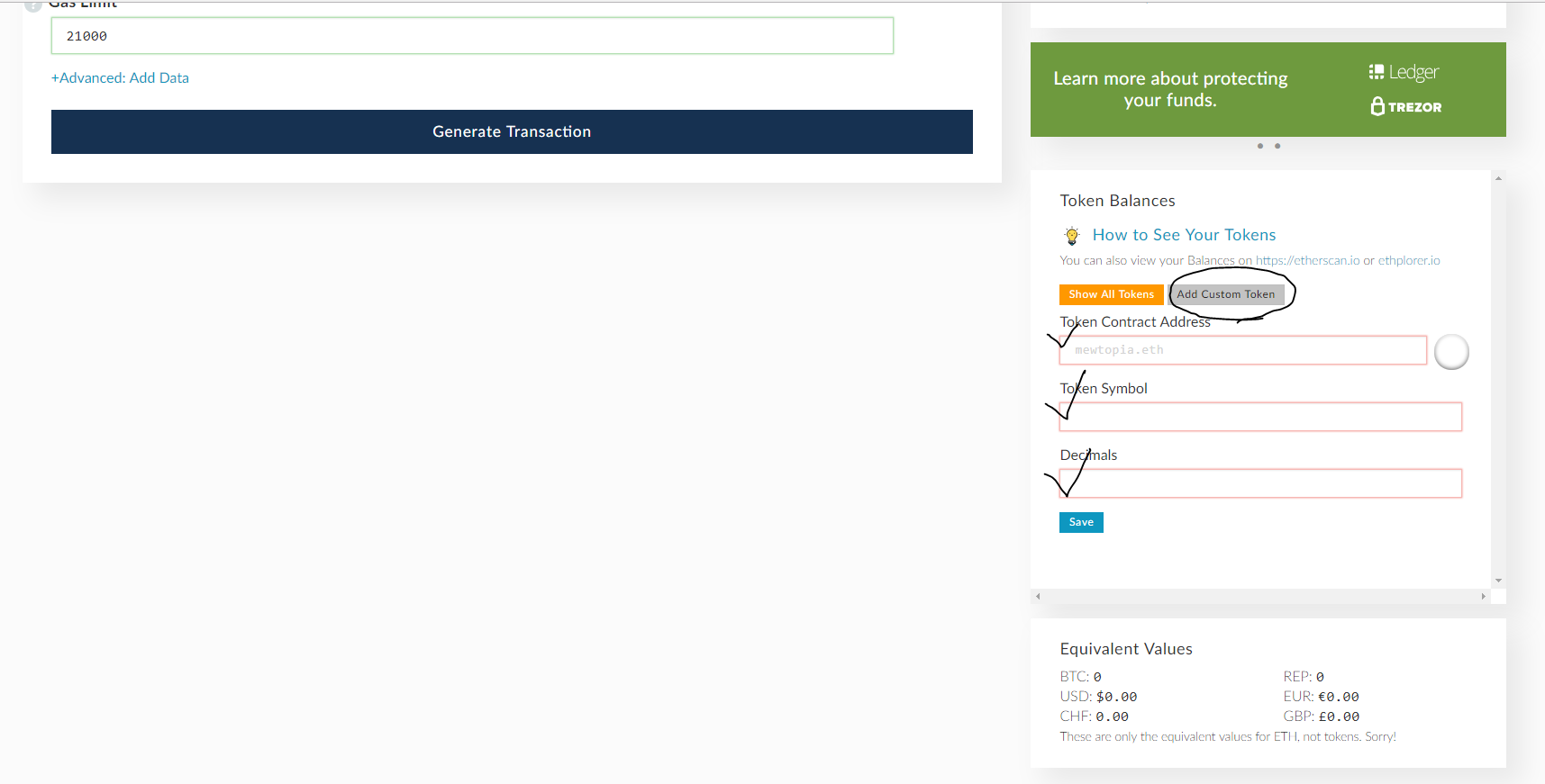 https://ethplorer.io에서 받은 토큰 정보를 등록하고 세이브 합니다.