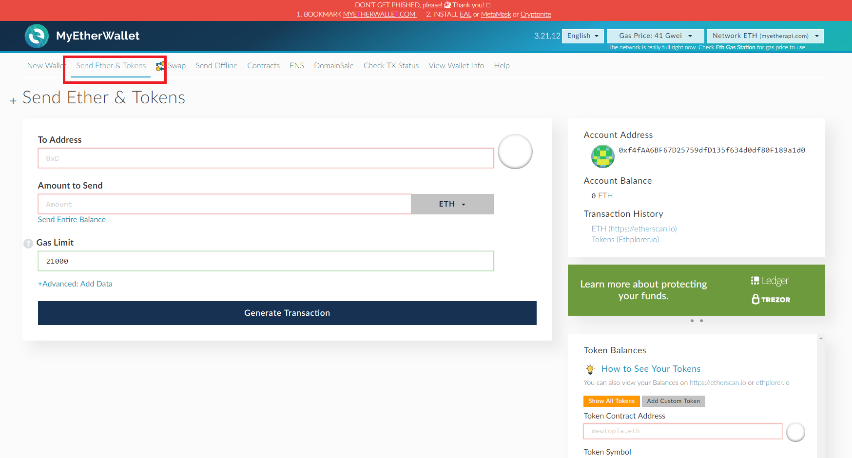 myetherwallet a에 움라우트 점이 찍혀있습니다. 원래 사이트와 똑같이