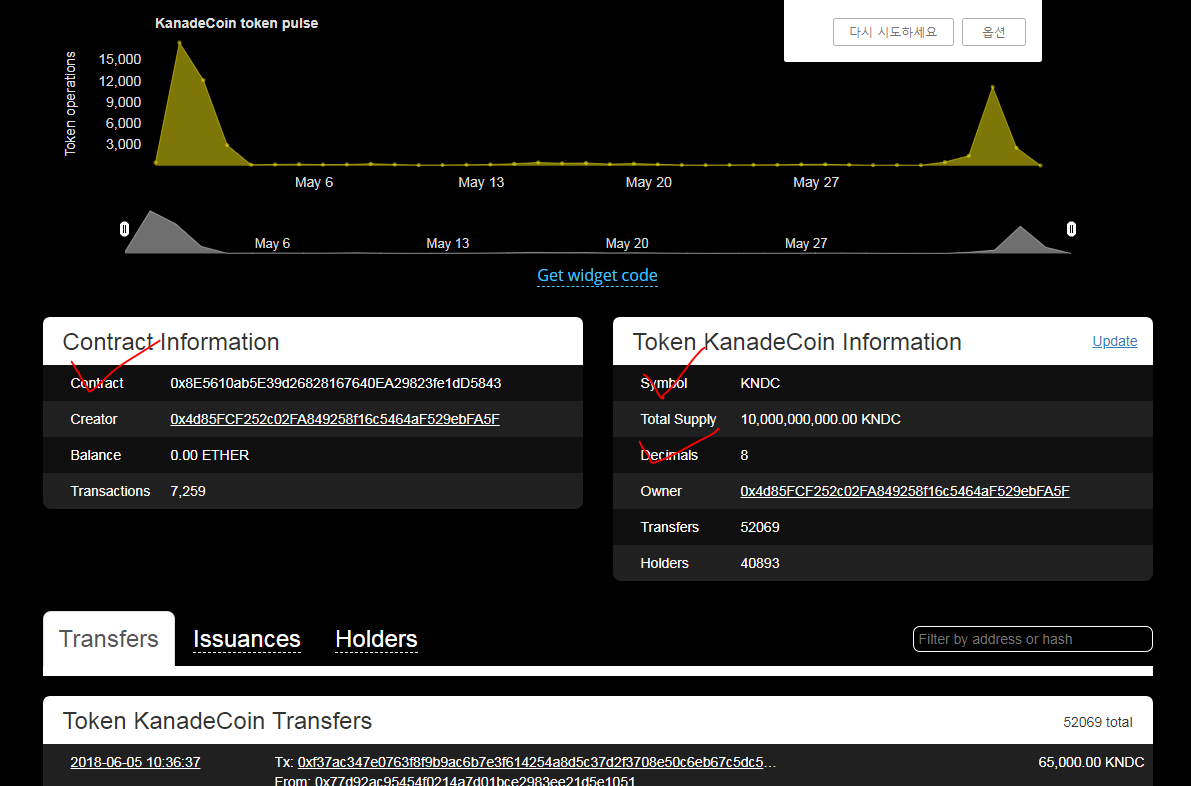 가끔 토큰등록이 에러날 때 있습니다. 앞에 ○마이너스 누르면 삭제 됩니다.