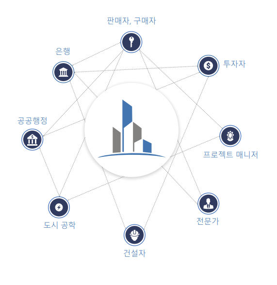 참가자 간의 관계 네트워크는 부동산 개발을 완료하기 위한