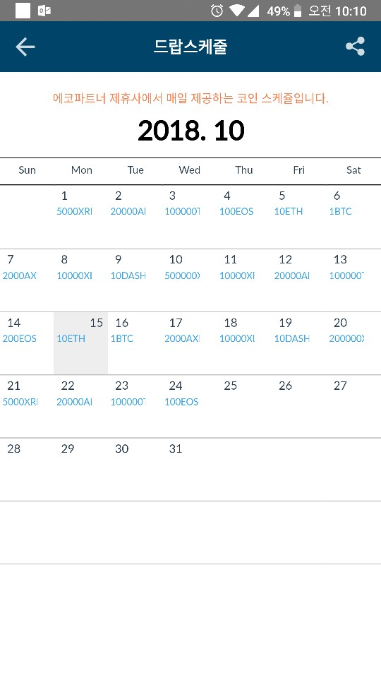 아래와같이 매일매일 에어드랍되는 코인이 다름,