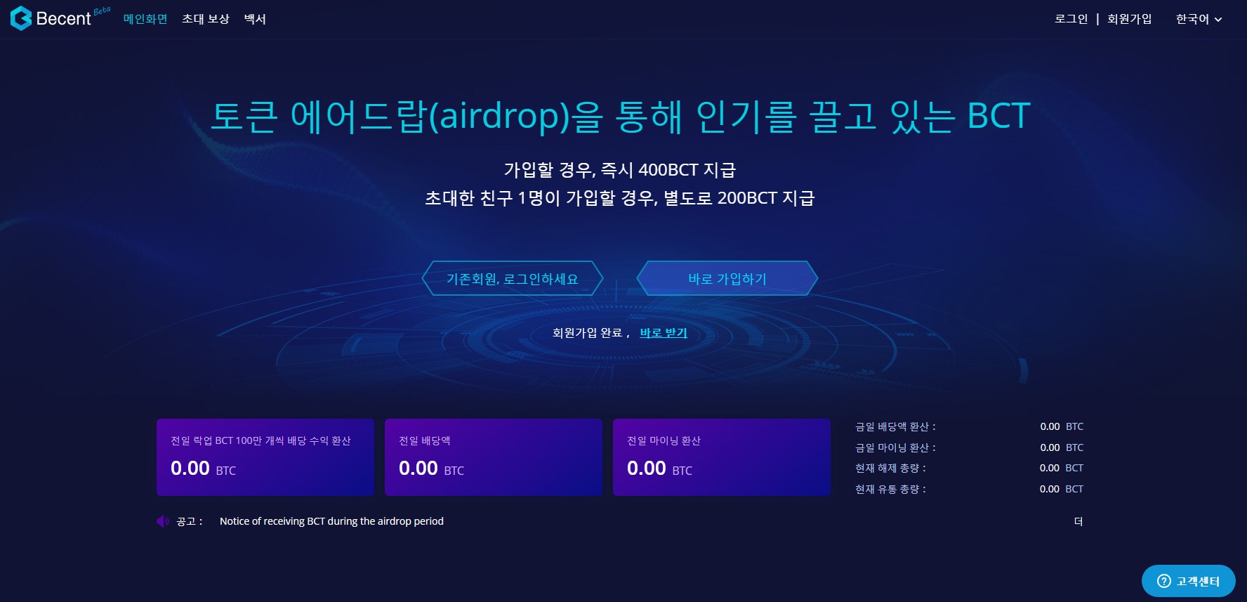 Becent 거래소 홈페이지도 잘 구축되어 있으니 들어가셔서