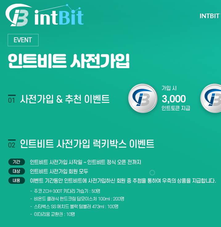 인트비트 거래소 소개 및 에어드랍..