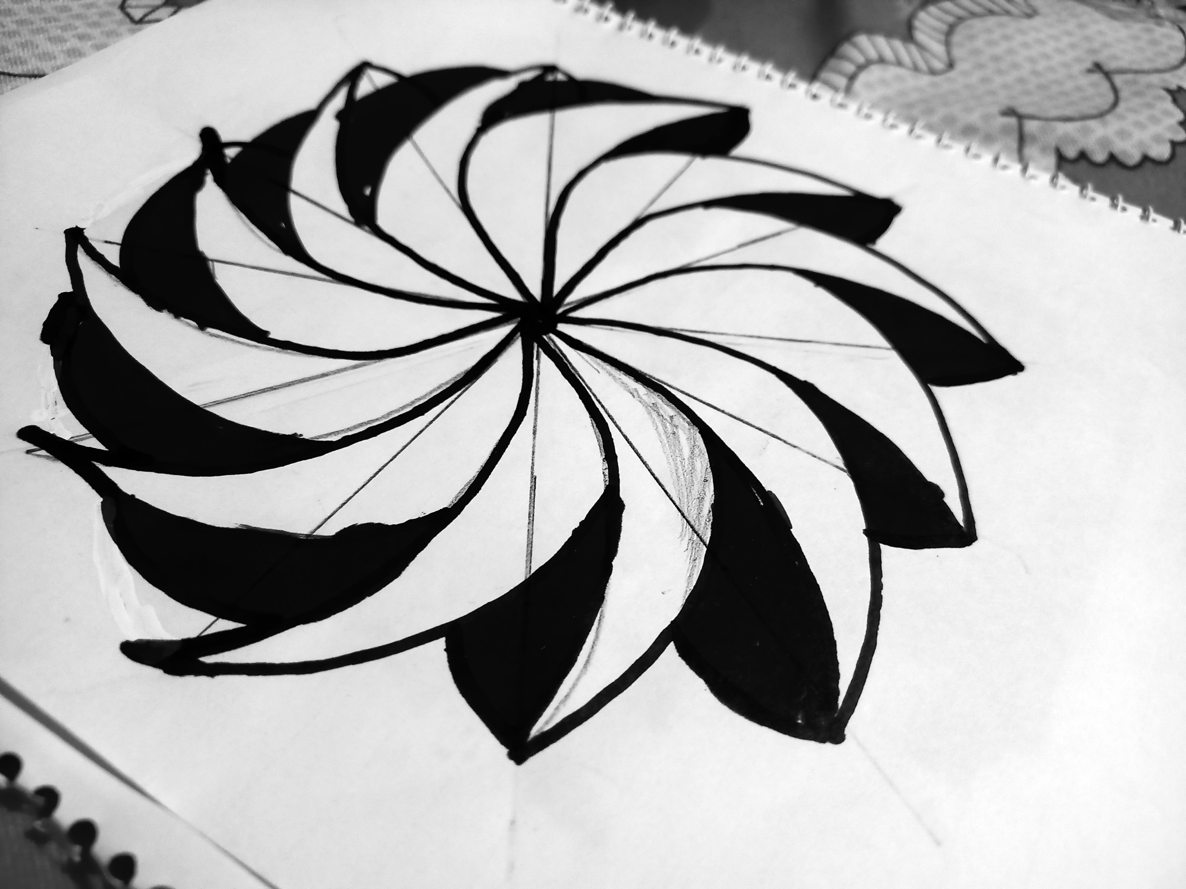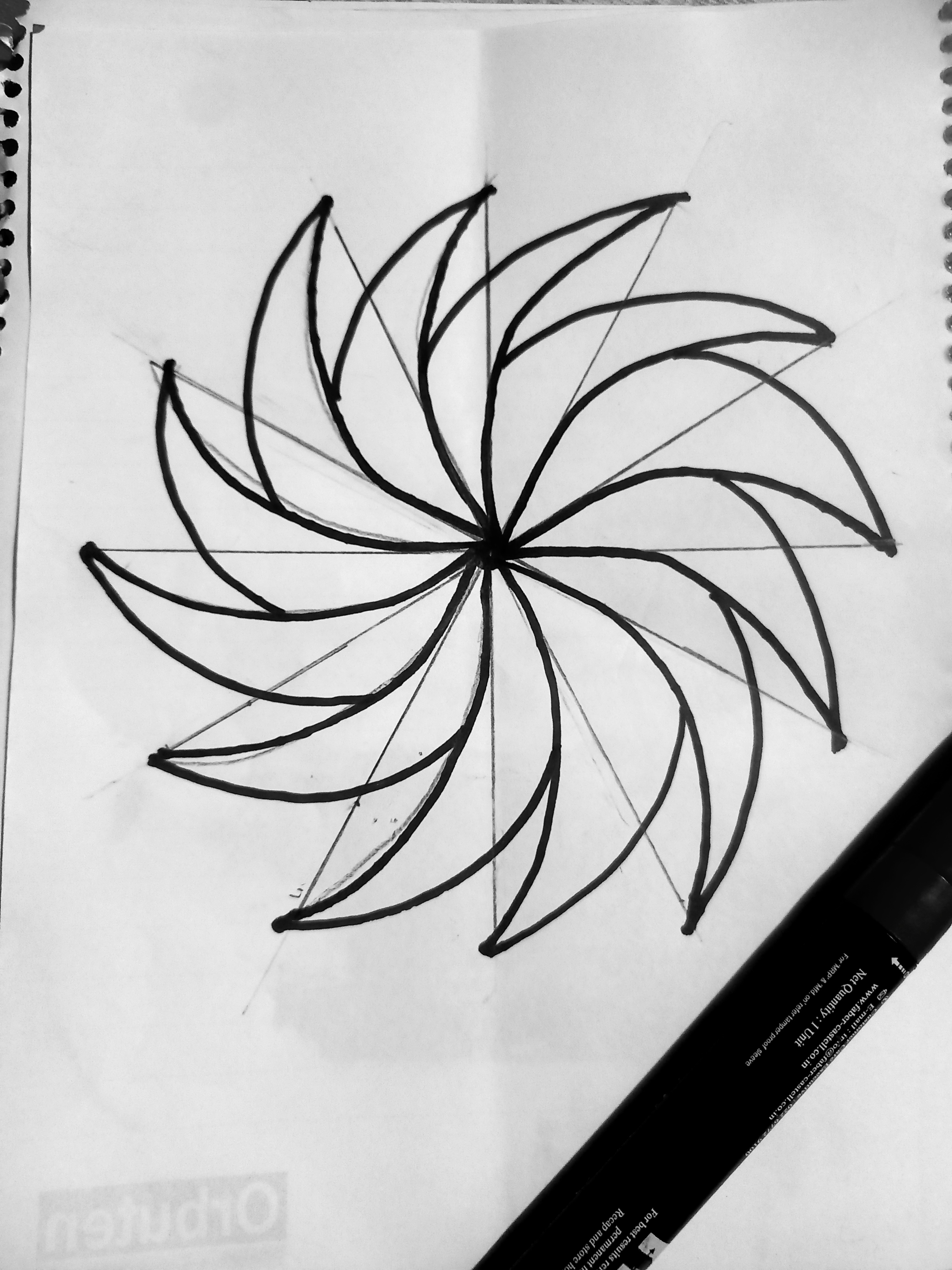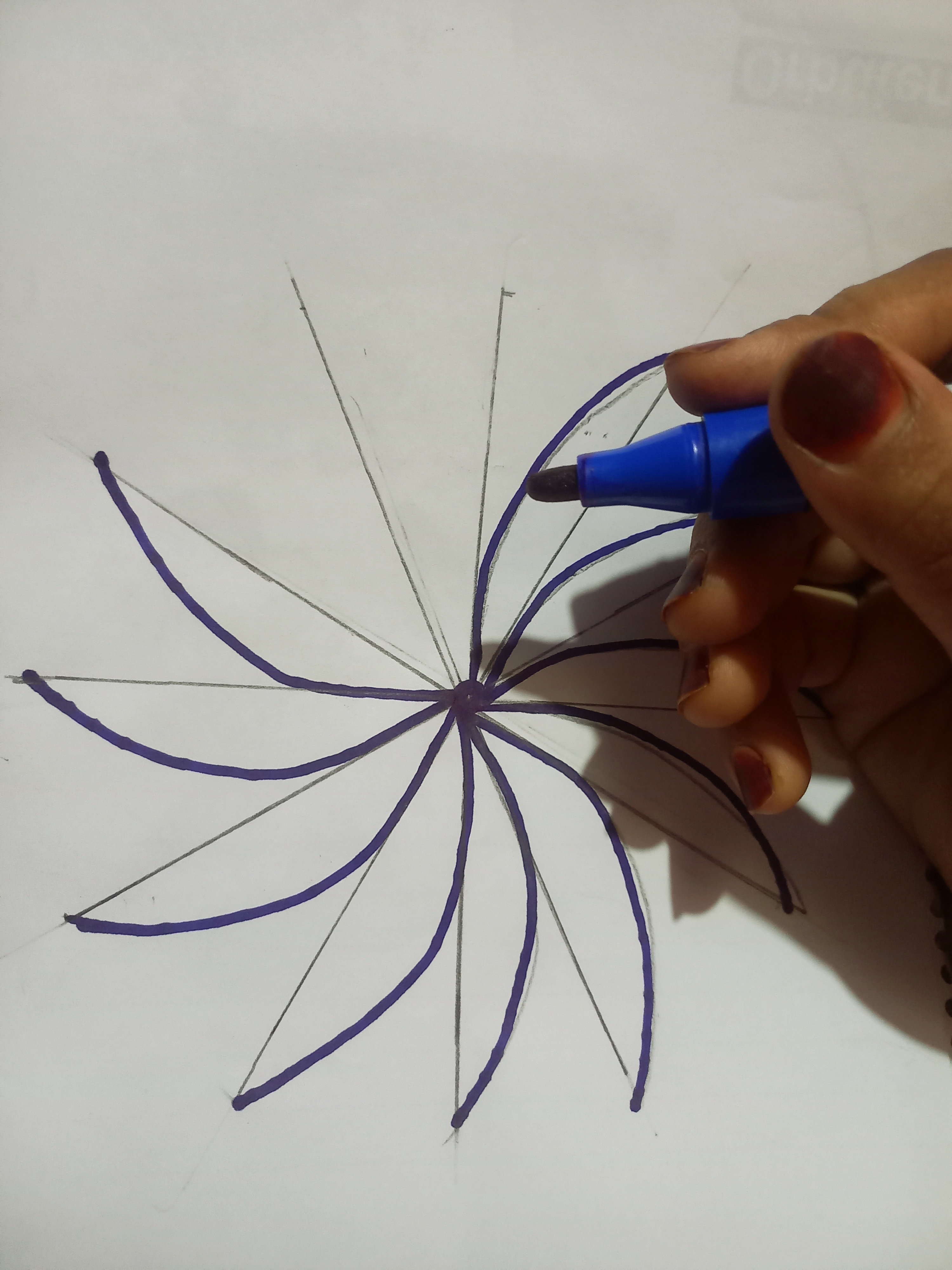 - তারপর ফুলের মধ্যে নিচের ছবির মতো করে দাগ দিলাম