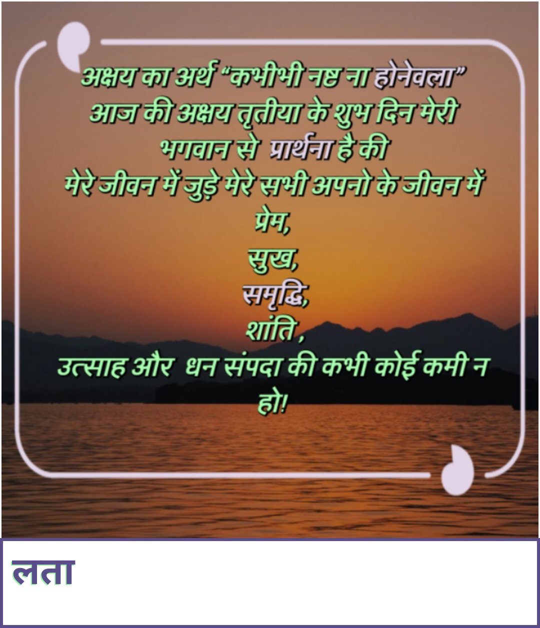 आज की अक्षय तृतीया के शुभ दिन मेरी भगवान से प्रार्थना है की